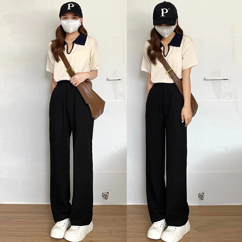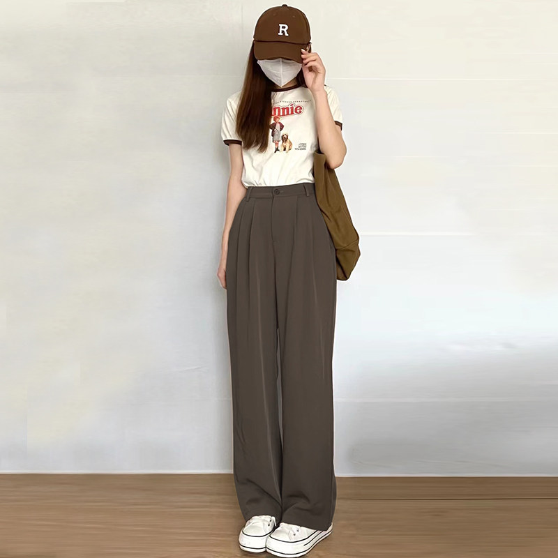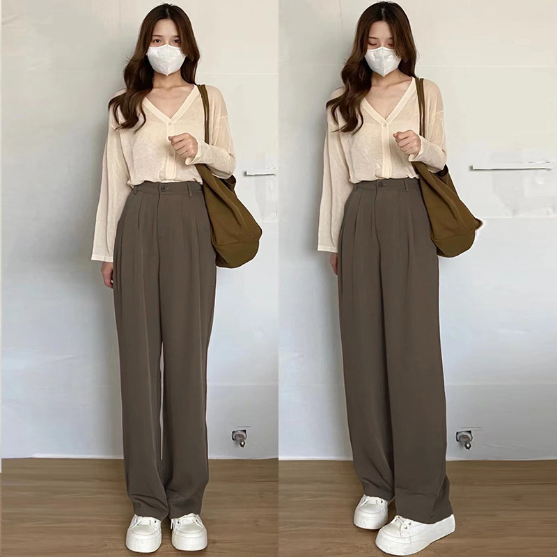 Card Its Color Broadlegged Pants Woman Summer Spring Autumn High Waist Pituitary Sensation Slim Straight Cylinder Casual Little Subwest Dress Pants Advanced Sensation
