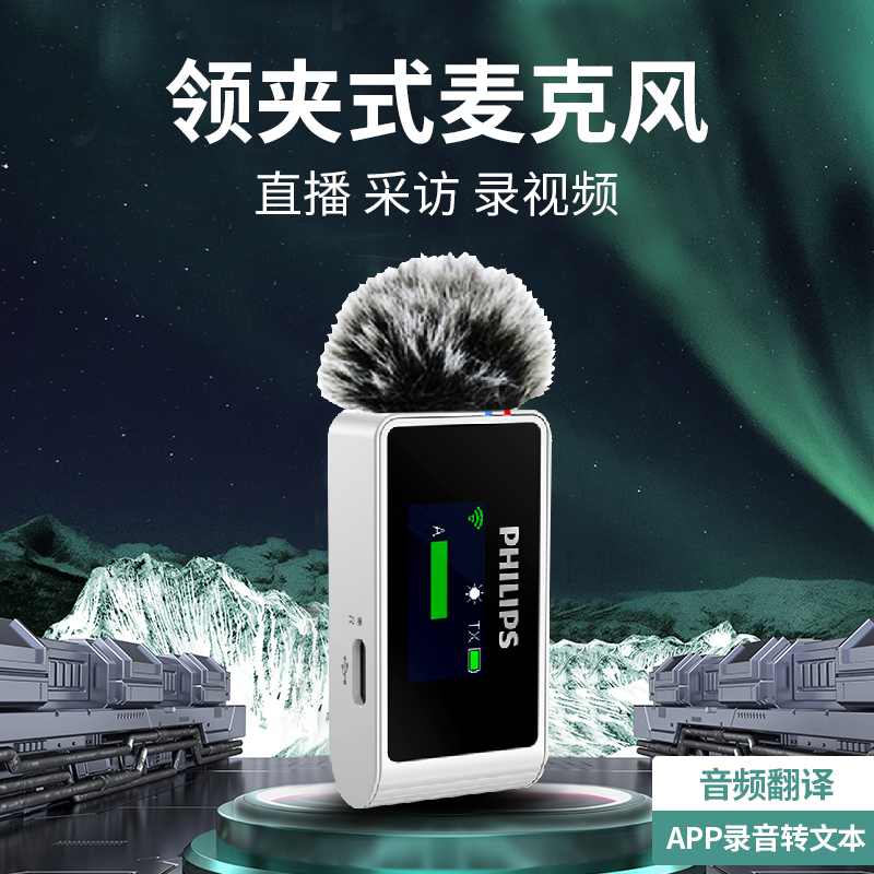Philips VTR7700 dedicated wireless collar clip microphone professional recording turn words matching mobile phone for recording pen device HD class with noise reduction remote lawyer business meeting theorist