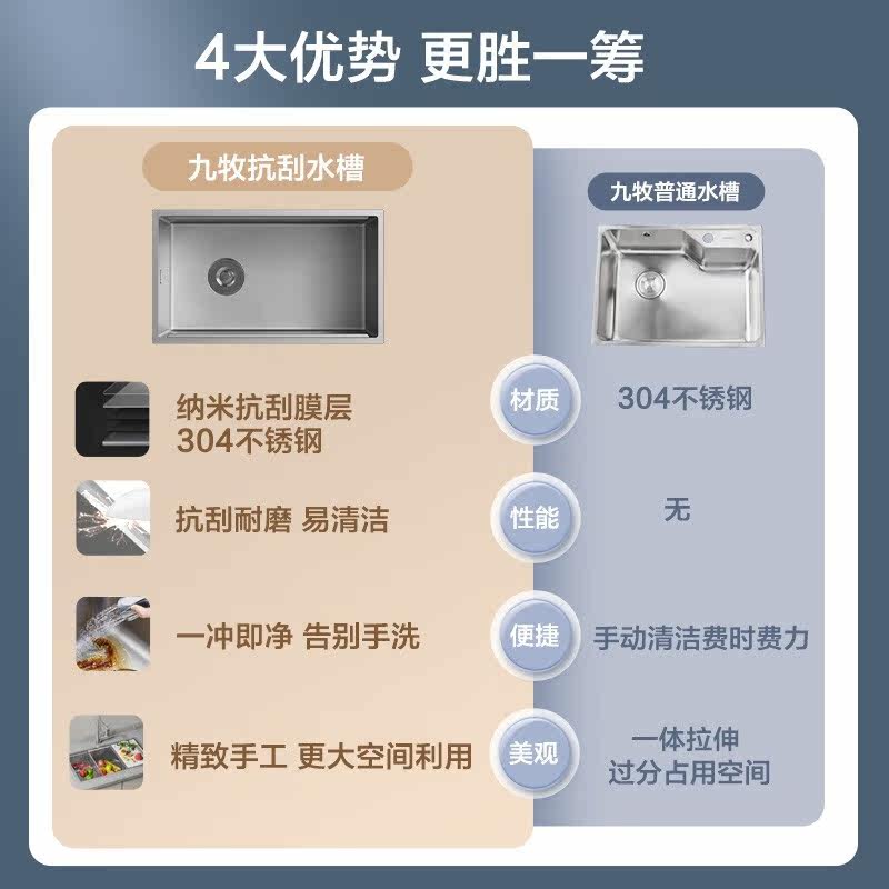 JOMOO 9 Husbandry Single Tank Stainless Steel Scrape Resistance Large Capacity silence Multi - Single Sink Track Duplex 06245