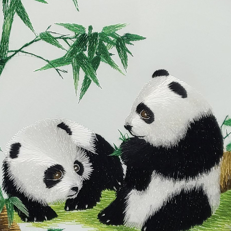 Embroidered double-sided embroidered giant panda pendulum small screen play with bamboo hand-pushed embroidery Shu embroidered Xiangembroidered Cantonese embroidery Chengdu presents