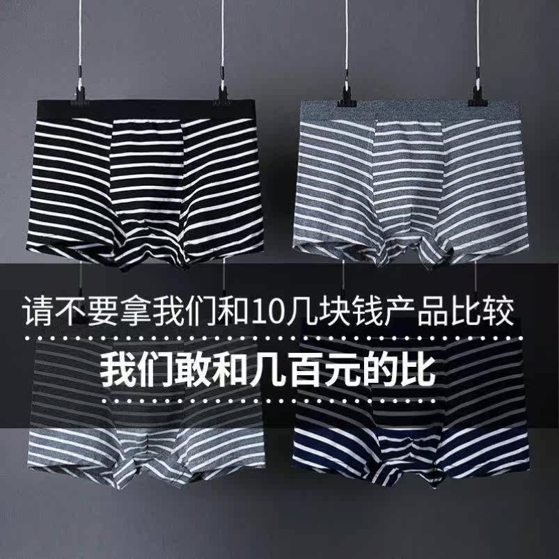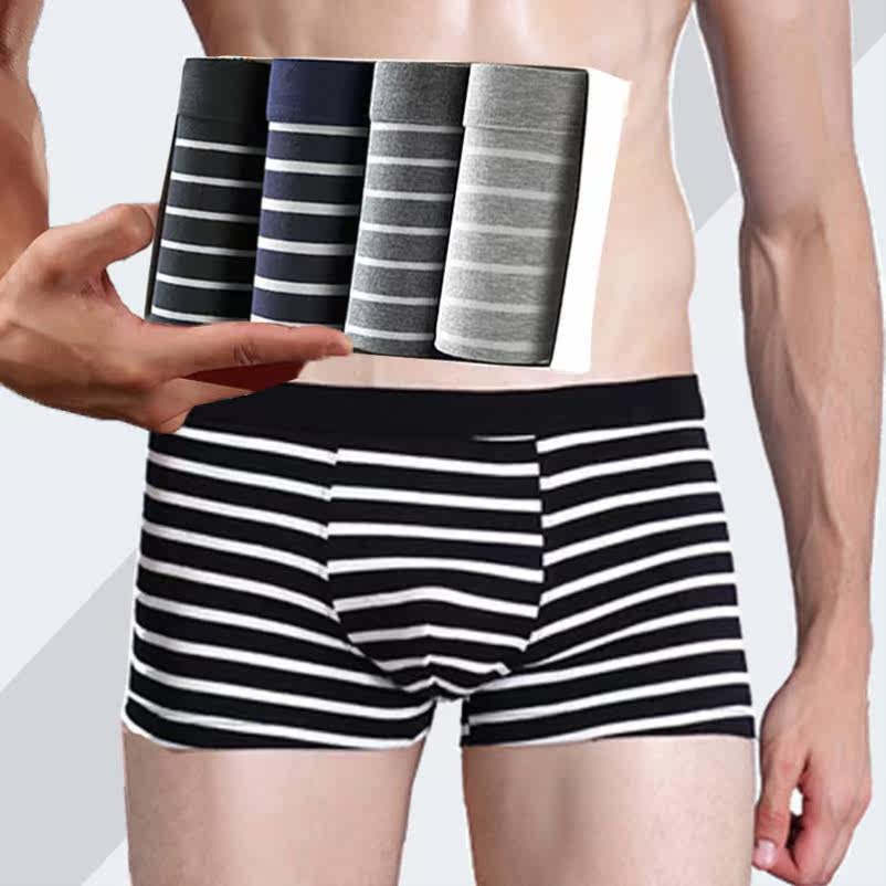3 Dress 95 Cotton Men's Underwear Pure Striped Cotton Fabric Men's Flat Corner Pants Youth Sexy Mid-Waist Four Corner Pants Head