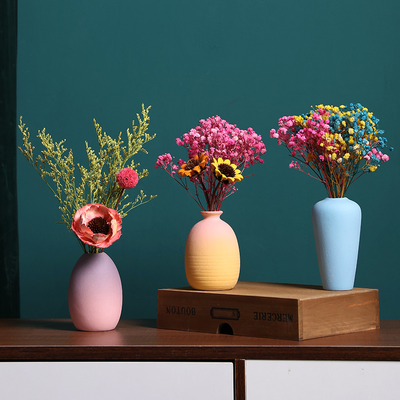High-end ceramic small vase TV cabinet Living room flower arrangement Dry flower bouquet decorated with light lavish floral swing piece Home Ornament