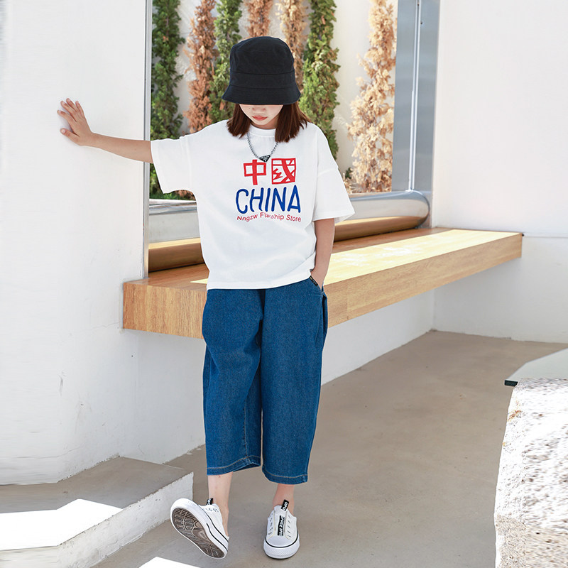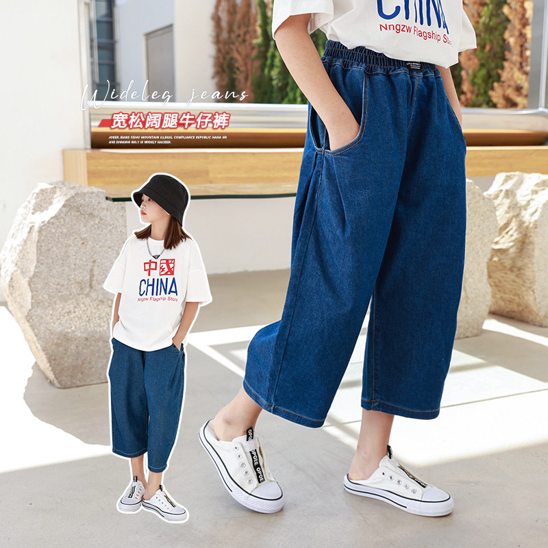 Girl Jeans Wide Pants Summer 2022 New Korean Version Children Loose Pants 70% CUHK Boy 50% Pants Foreign Pie