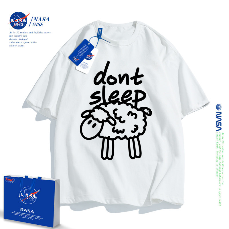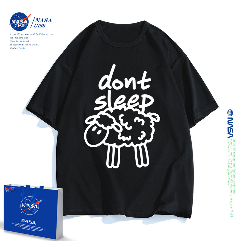 NASA Klein Blue Short Sleeve T-Shirt Women's Summer Ins Men's Tide Couples Heavy Cotton Loose Oversize Top