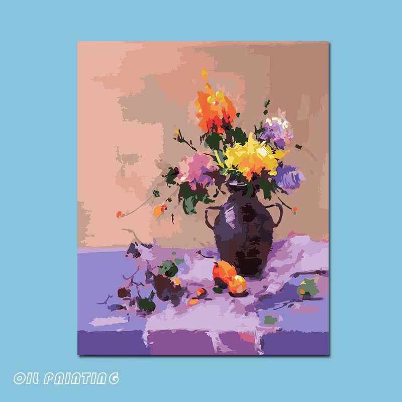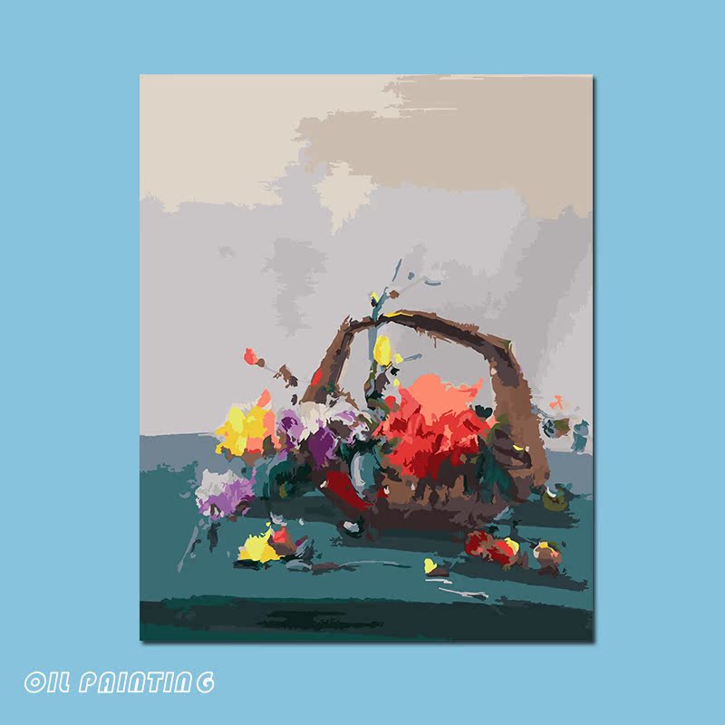"Flowers" Digital oil painting Diy Fill cartoon Cartoon Handcrafted Color Hand-painted Oil Color Painting Decoration Painting