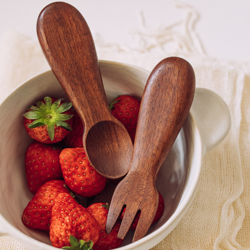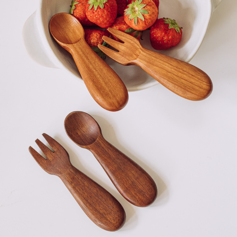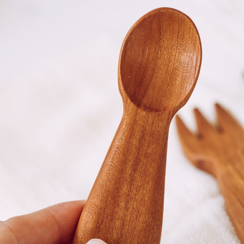 Tree can children's meal spoon baby food supplement spoon training fork short handle home creative rice spoon cute solid wood tableware