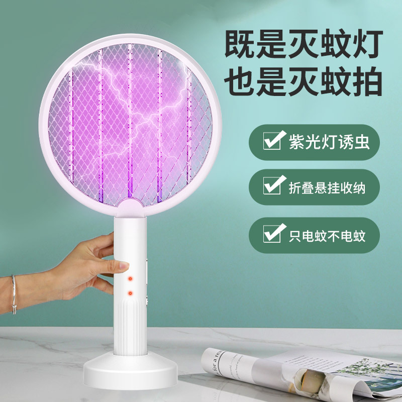 Home Charging Mini Electric Mosquito Flapper Mosquito-borne Mosquito Lamp Two-in-one Portable Electric Shock Mosquito Indoor Killing Mosquito Deity