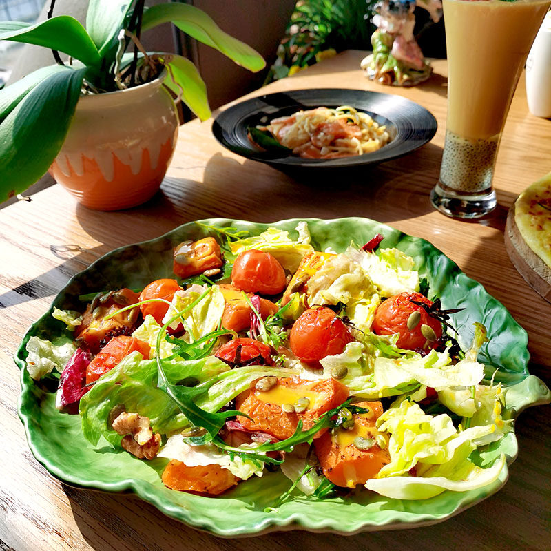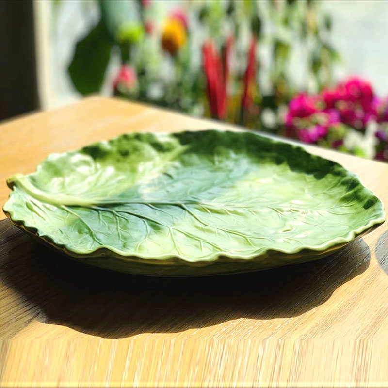 Hand painted ceramic glaze Lower color large number fruit tray Sharlapan European-style living-room swing with cabbage leaves Decorative Pan American
