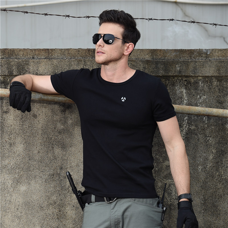 Ruling official short sleeve round collar tactical T-shirt men's body high elastic outdoor T-shirt military fans summer fitness training clothes