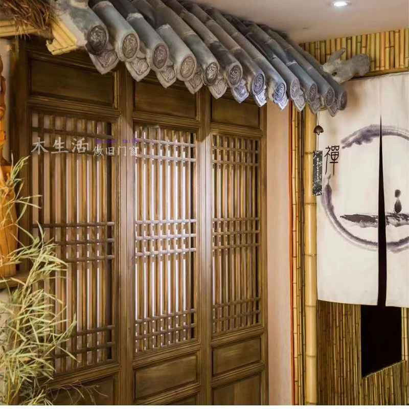 Dongyang wood carving ancient doors and windows of ancient retro-style curtain door and window partition screen wind solid wood tea room door customization