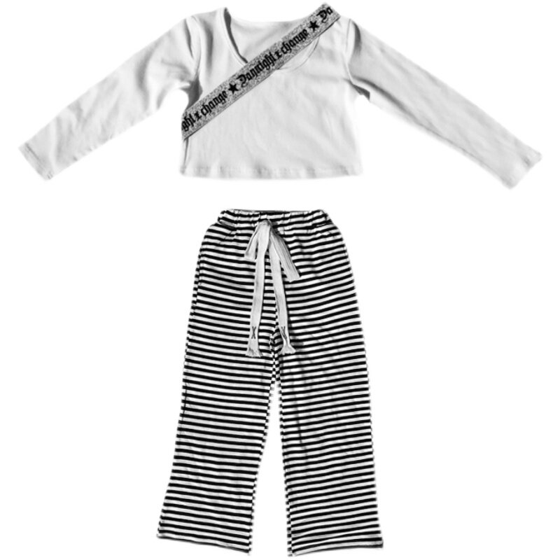 White top (one piece) Black top (one piece) Striped wide pants (one piece) Black suit White suit