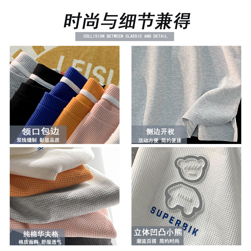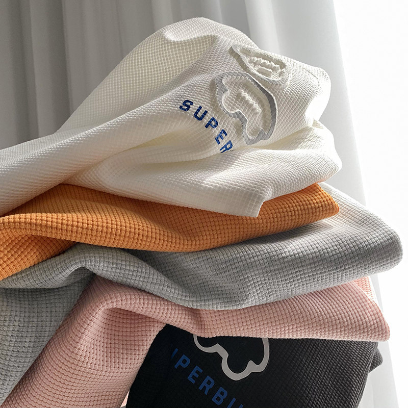 Large size waffle short-sleeved t-shirt women's 2022 new fat mm summer Korean version loose half-sleeved ins tide 200 catties