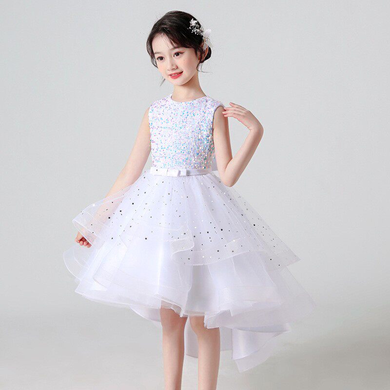 Swallowtail skirt girls summer princess dress catwalk performance children's birthday dress with short back and long dress before the performance - Taobao