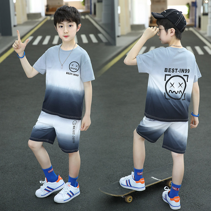 Boys' cool and handsome summer suit 2022 new trendy handsome and fashionable children's summer style children's short-sleeved two-piece suit trendy