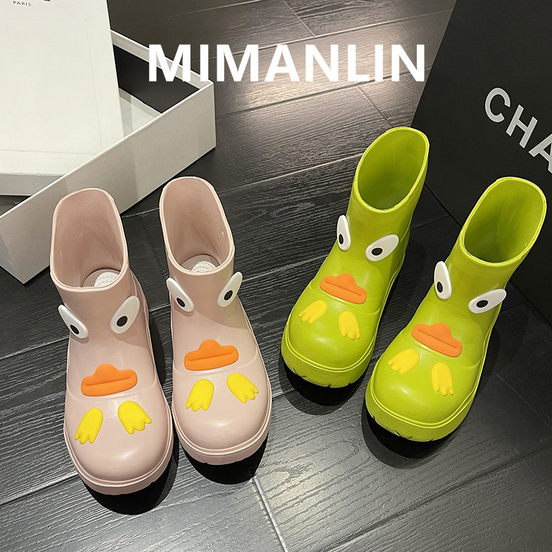 A piece of candy red with green boots in the same butter fruit and green boots in summer fashion wearing water shoes big boots