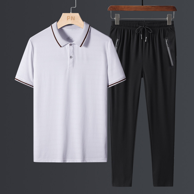 Summer Clothing Middle Aged Ice Silk Speed Dry Short Sleeve T-shirt Men Breathable Summer Thin Dad Casual Sports Suit