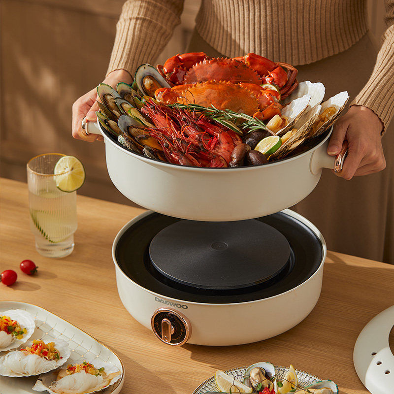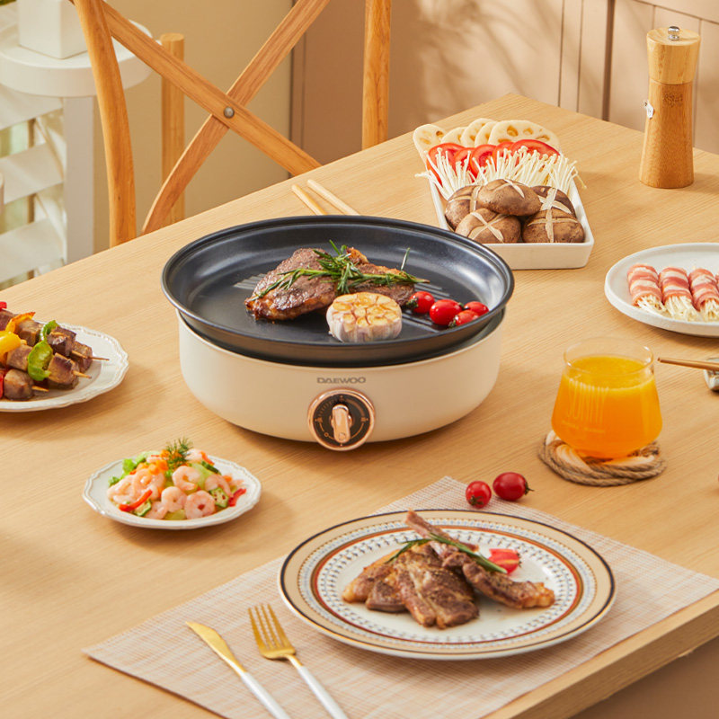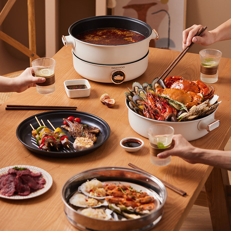 South Korea's Daewoo electric hot pot household two-piece multi-function cooking pot barbecue meat steaming, steaming, frying and frying quick-cooking pot
