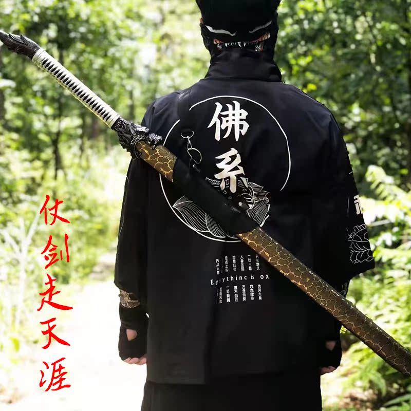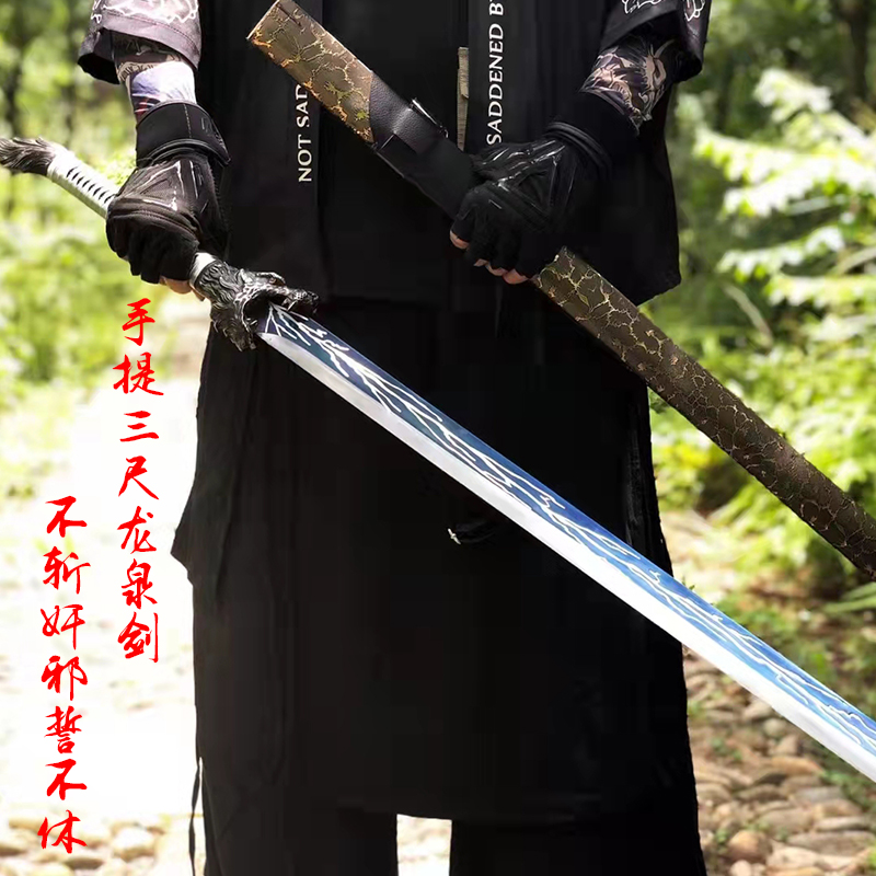 Longquan Town Residence Long Version Integrated Tang Cross Knife Embroidered Black Gold Knife Sword Manganese Steel Cutter anti-body martial art equipment unopened