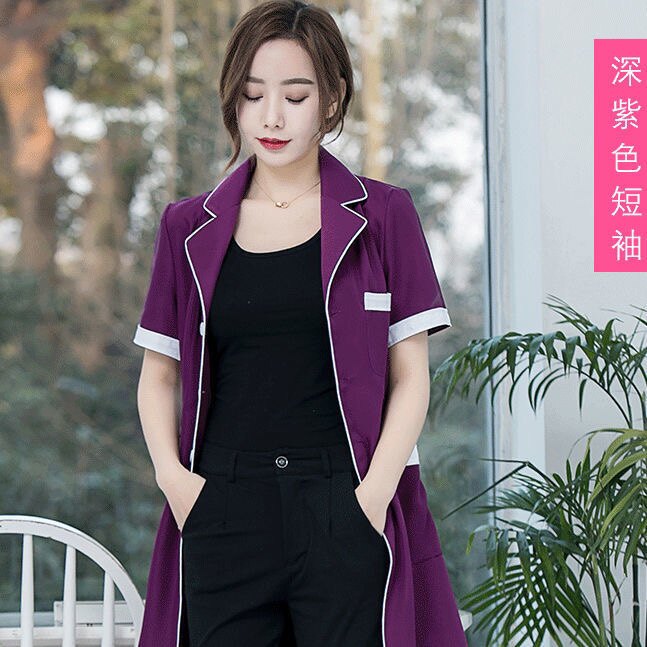 High-end Beauty Salon Beauty Division Workwear Women Summer Clothing Short Sleeve Tattooed Embroidered Coat Big Coat Free Custom Logo