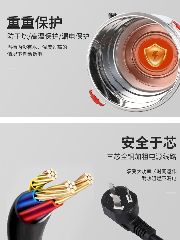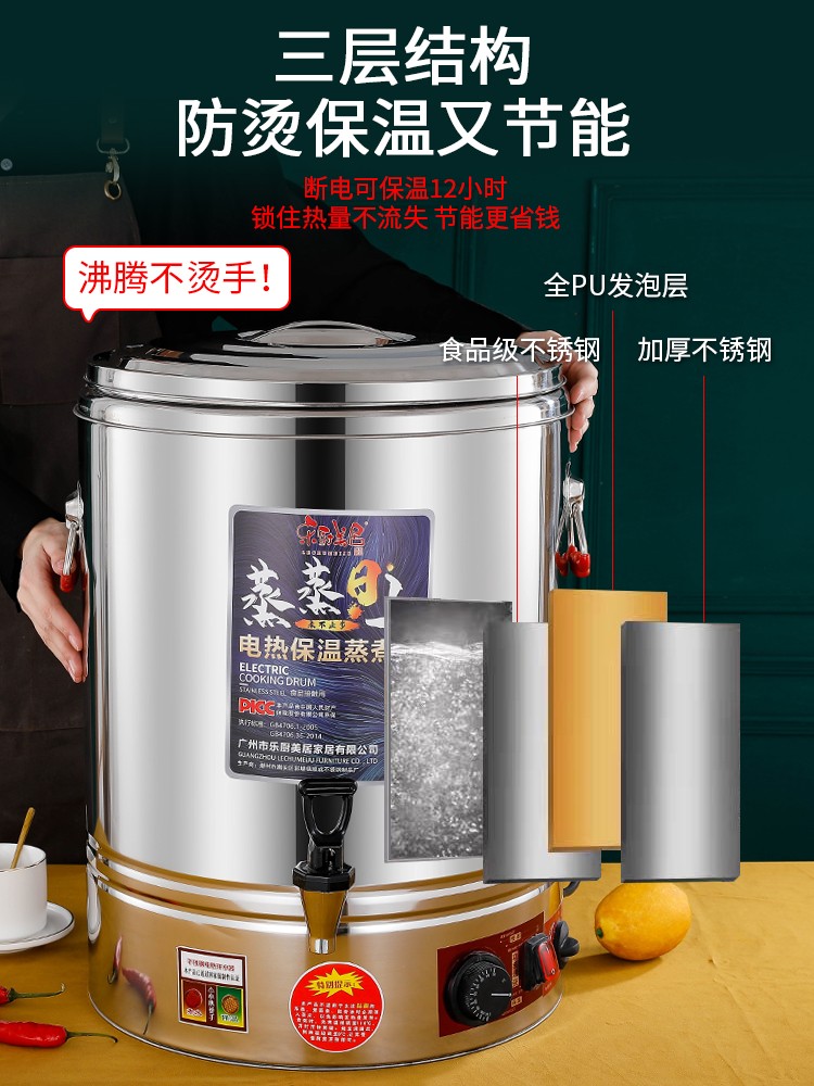 Electric thermal insulation bucket commercial stainless steel large-capacity boiling water soup pot heating and cooking integrated porridge boiling water soup bucket