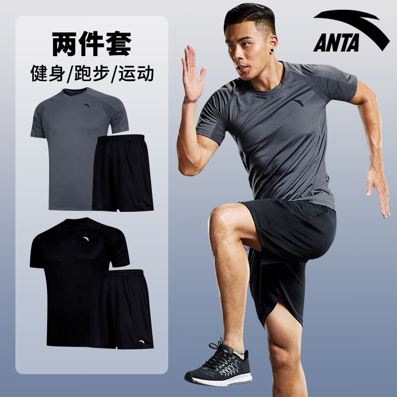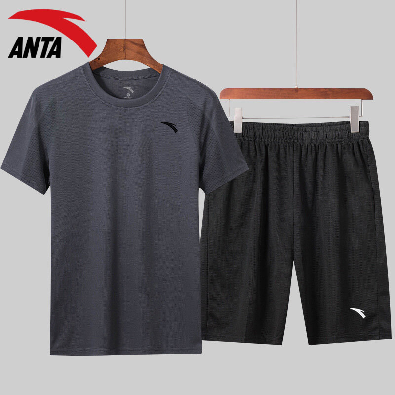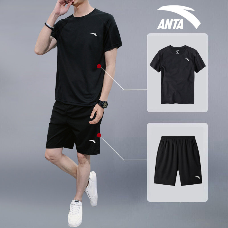 Anta Sports Suit Men 2022 Summer Speed Dry Ice Silk Thin Running Fitness Wear short sleeve shorts Two sets