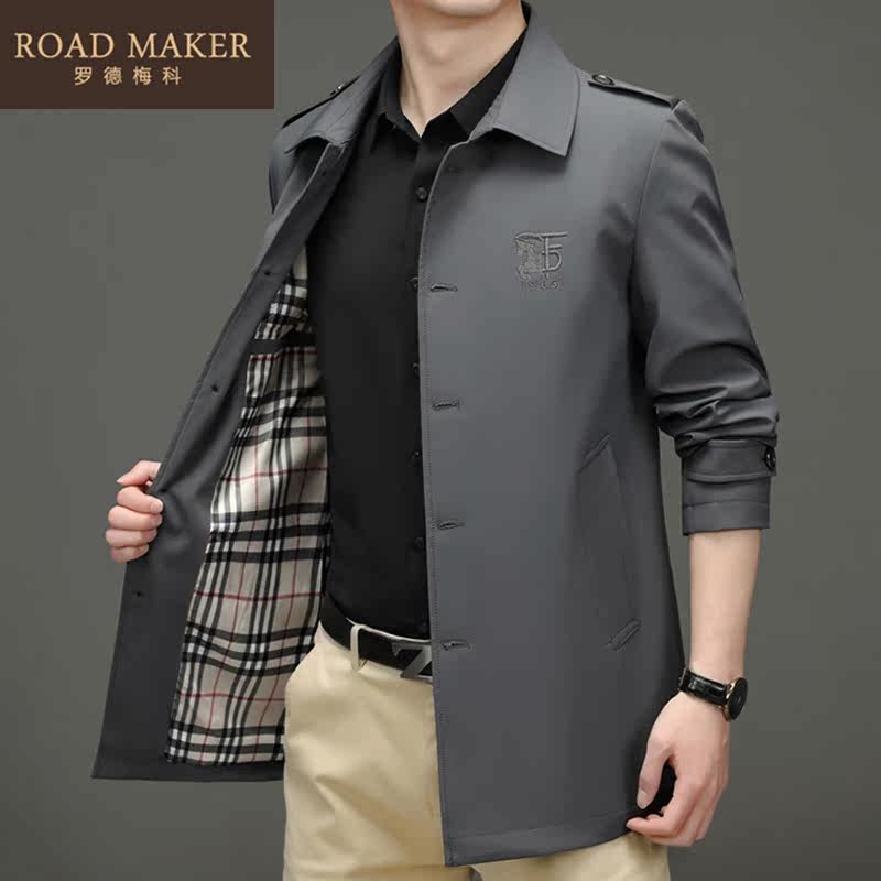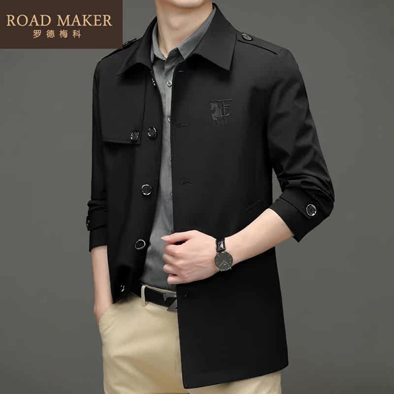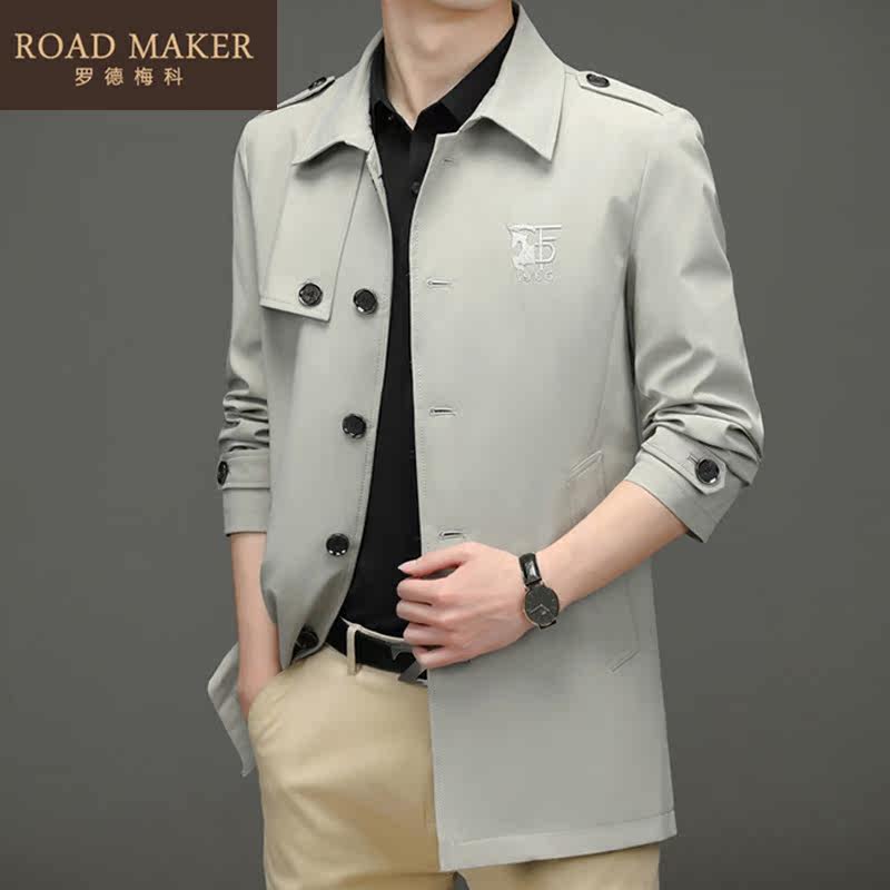 ROADMAKER 2022 spring and autumn new windbreaker men's mid-length version men's simple lapel embroidery jacket men