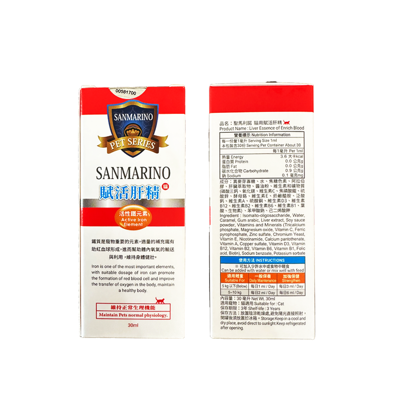 San Marino blood-enriching liver essence cat special D3 blood-enriching liver-enhancing blood iron anemia to promote metabolism 30ml