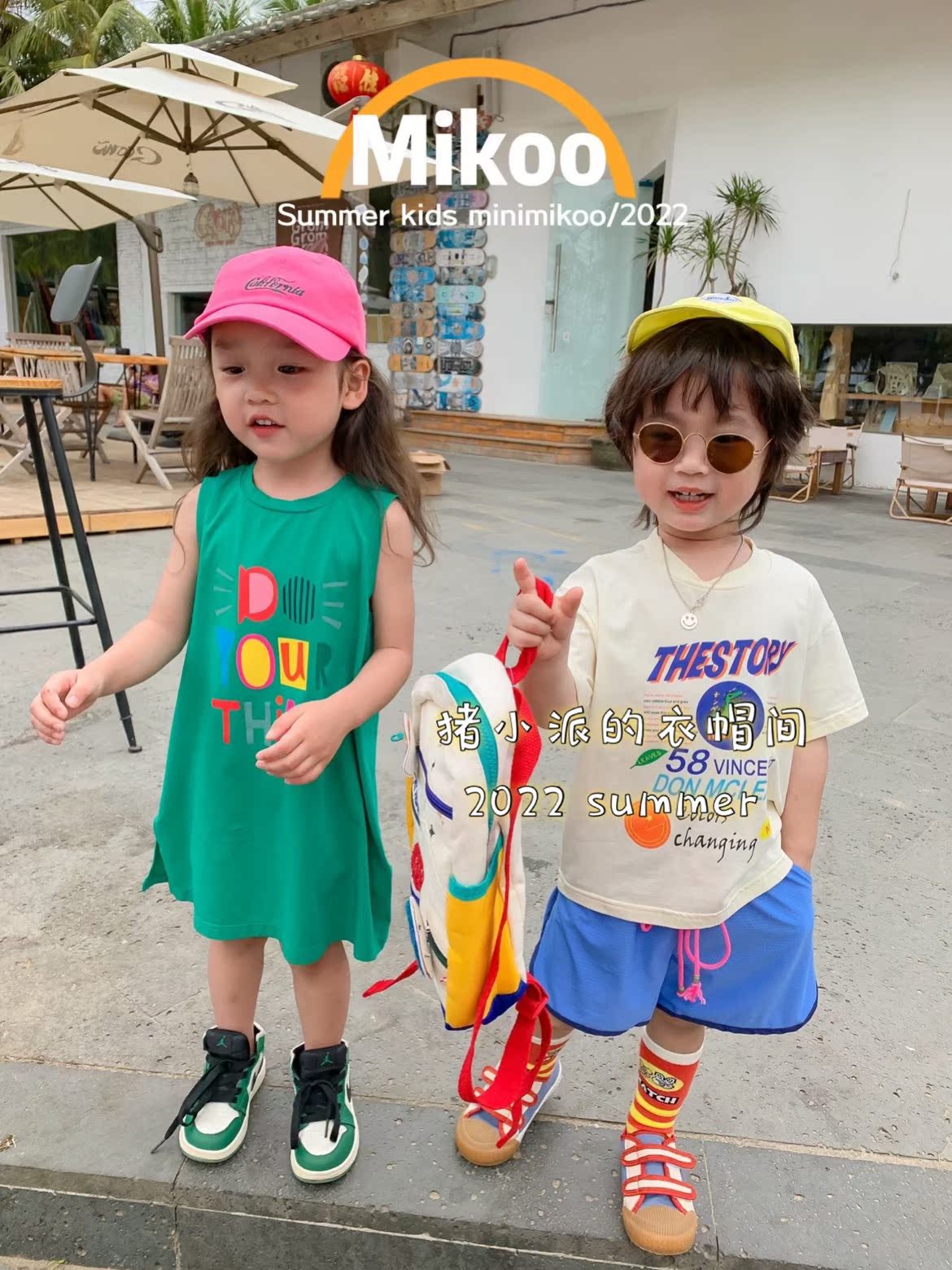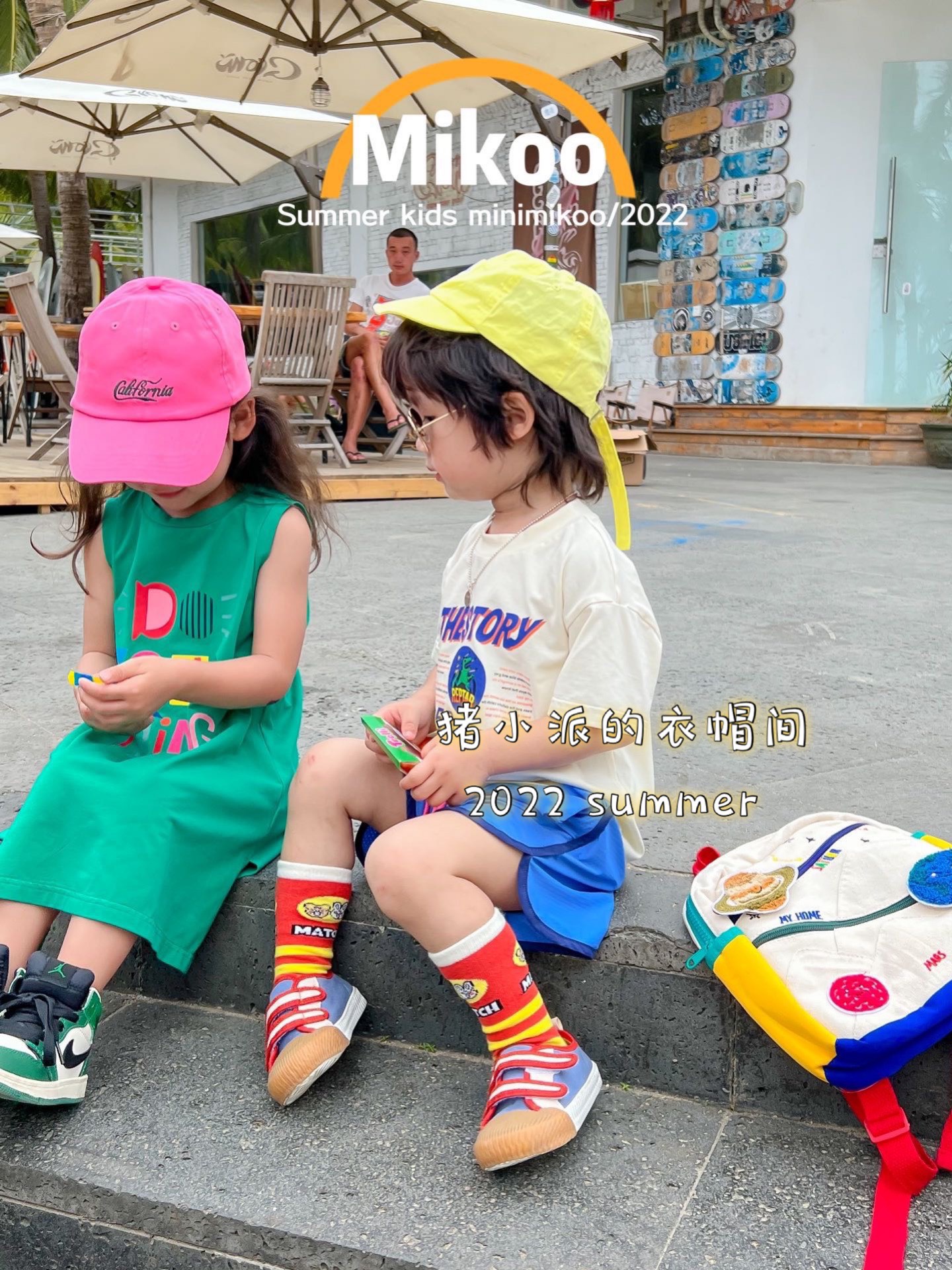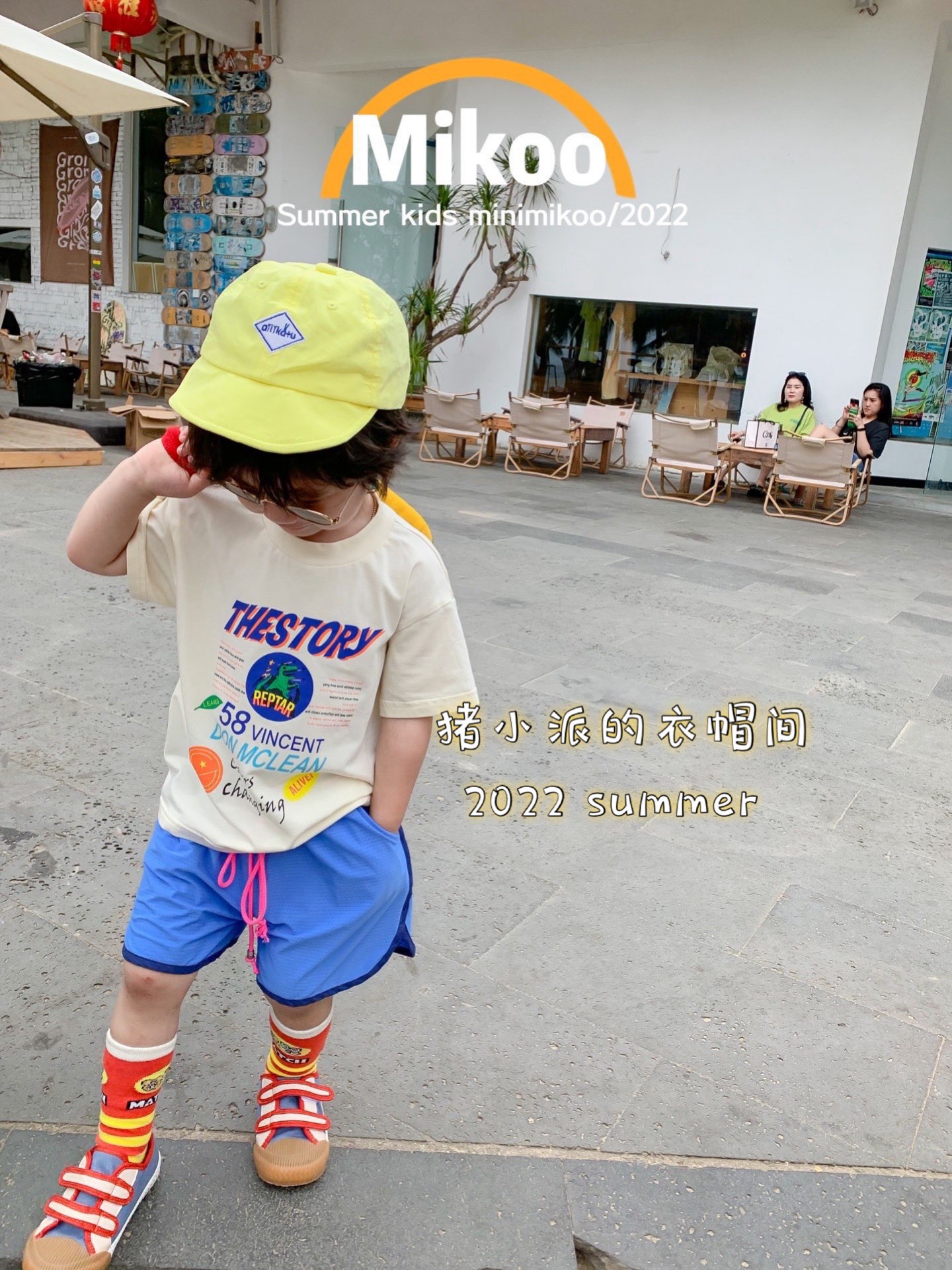 Pig Small Pie 2022 Spring Summer Men's Children's Costume Cartoon Printed Round Collar Short Sleeve T-shirt Sports Shorts Suit Korea