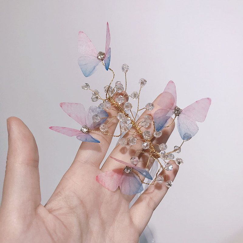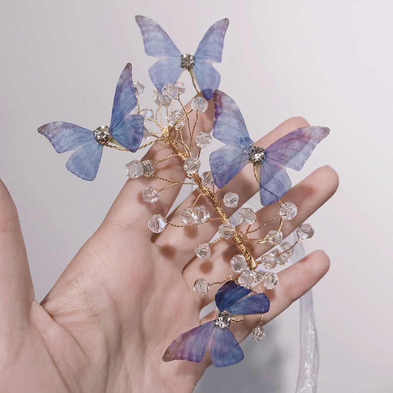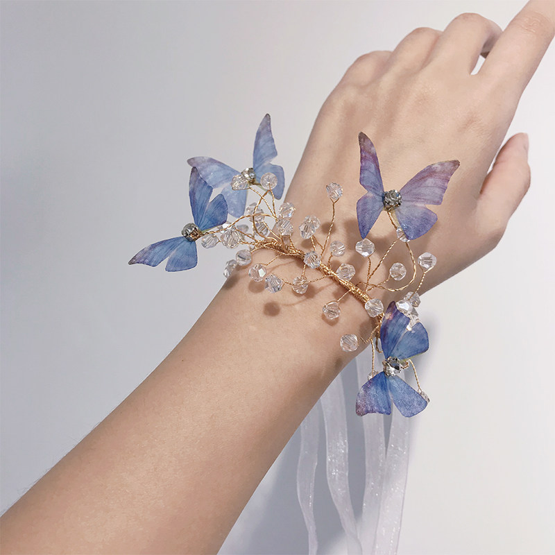 Original little fresher son's wedding bride wrist floral bridesmaid's hand ring floral blue pink butterfly crystal hand tied flowers-Taobao