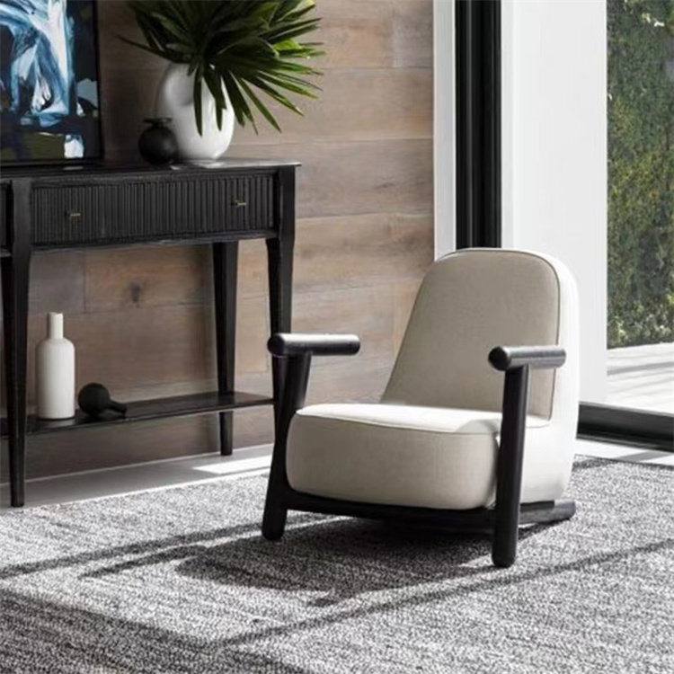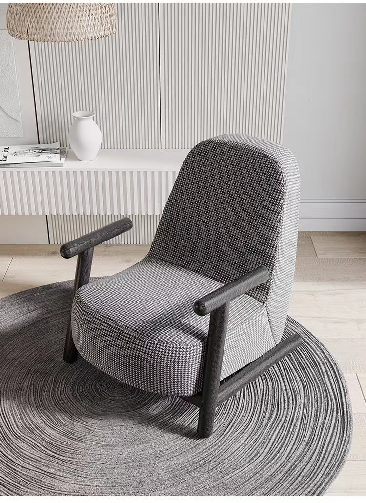 Nordic creative living room fabric sofa chair designer houndstooth leisure chair solid wood armrest chair tea table chair