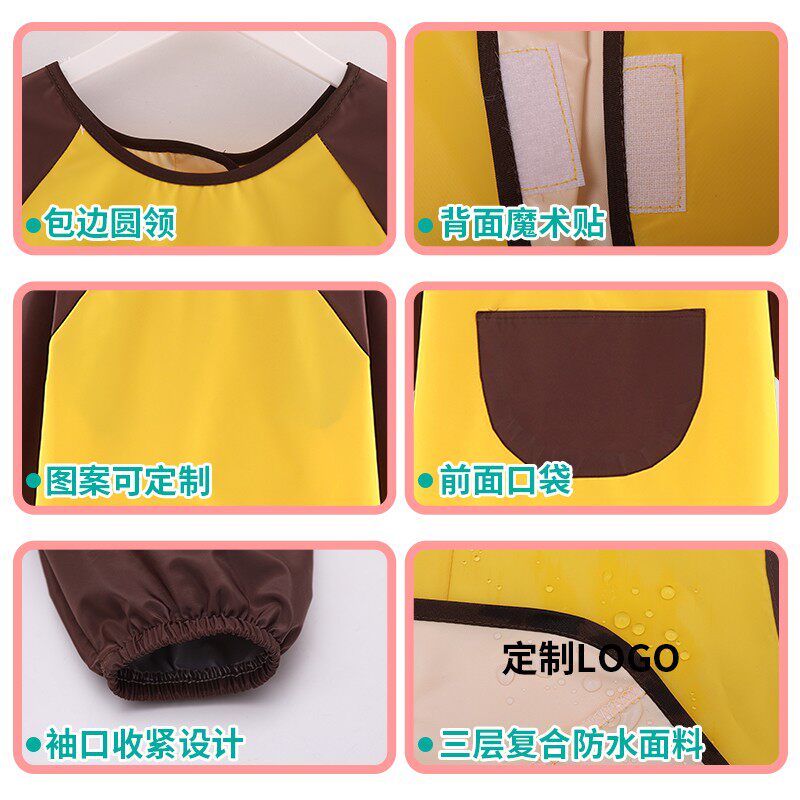 Children's walled pocket waterproof long sleeve drawing clothes Custom logos Exterior Wearing Kindergarten Painting Fine Art Calligraphy Apron