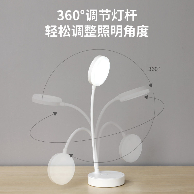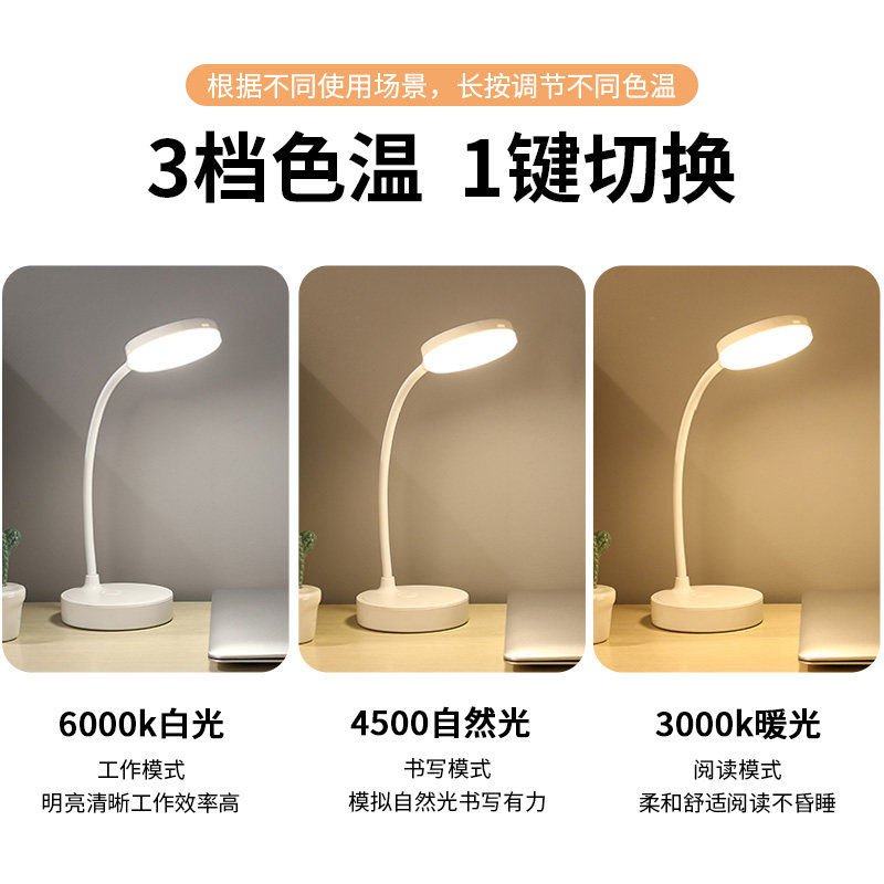 Eye Care LED Small Table Light Learning Book Desktop Writing Homework Reading Student Dormitory Bed Head Lamp Brief Indoor Lighting Key Switch Dimming Toning and Portable Folding Charge Plug-in long sequel
