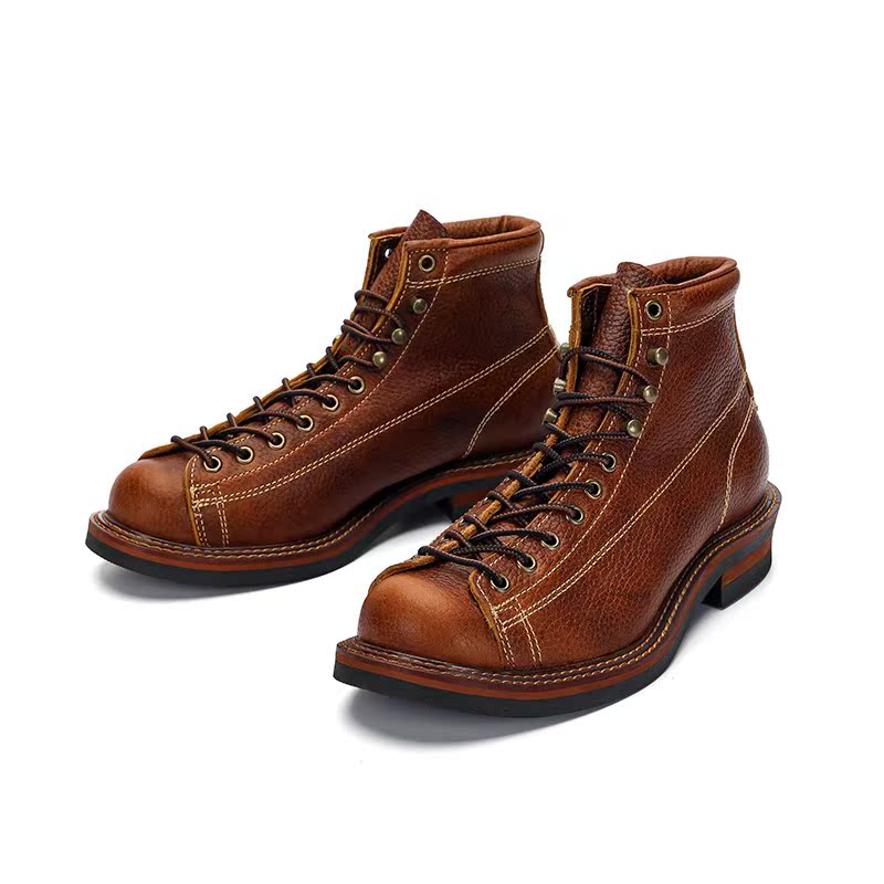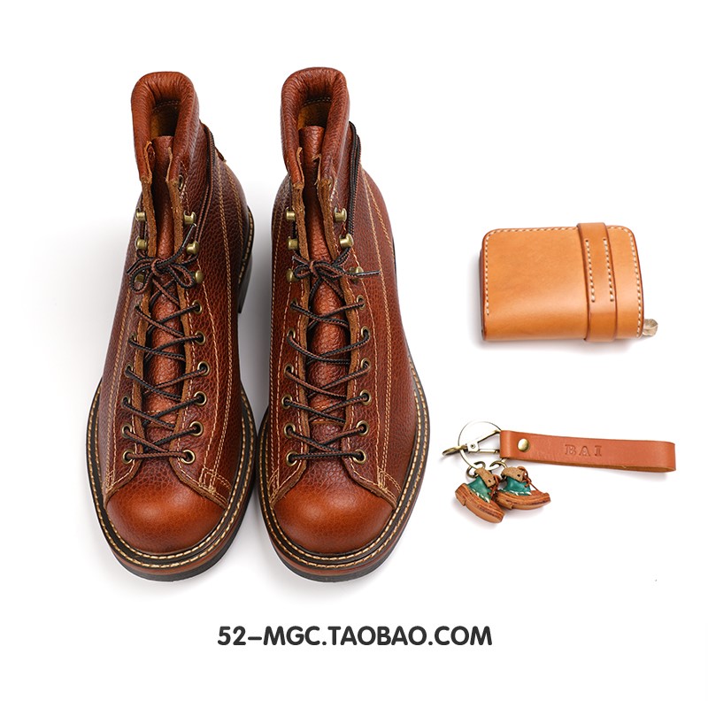Ammy click on short face tooling shoes retro collage high cylinder round head men and women Martin locomotive paratrooper boots cow leather short boots