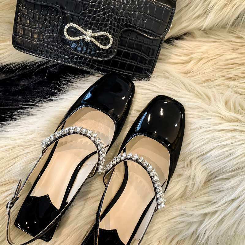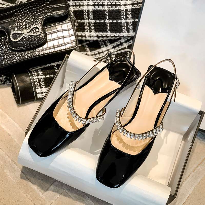 2022 spring and summer new one-word drill buckle belt back empty square head shallow mouth single shoes thick heel Baotou Mary Jane sandals women