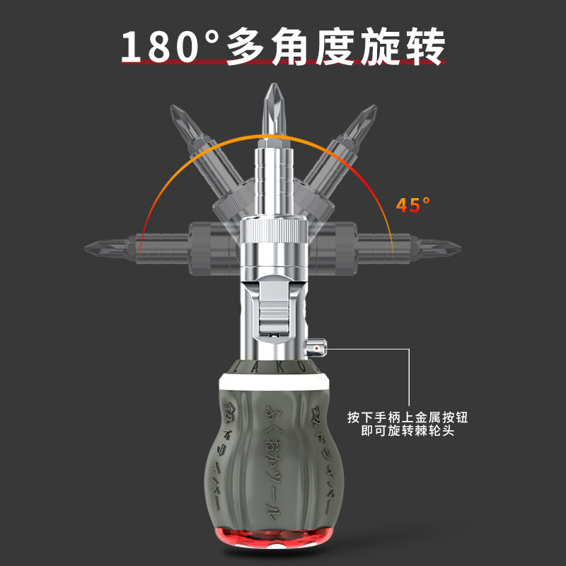Japan Fukuoka ratchet rot head screwdriver set cross word super hard small mini short handle short handle screwdriver