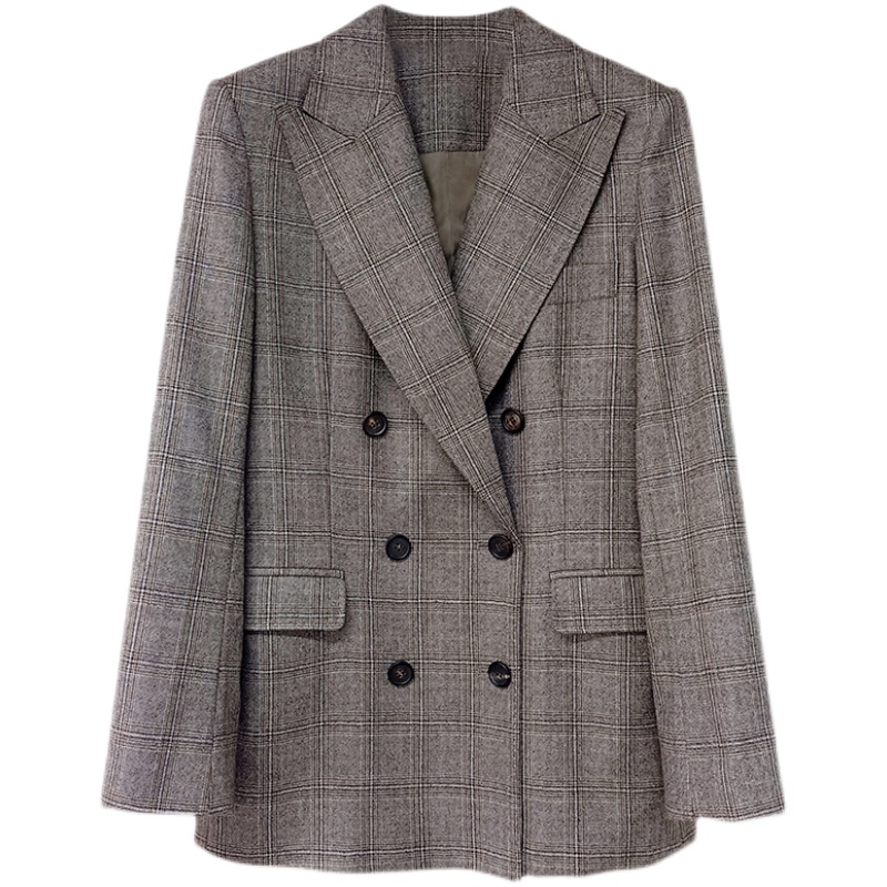 NZ retro Hebbon wind double-row buttoned cashmere wool curvy suit woman blouse jacket jacket 2022 Spring new