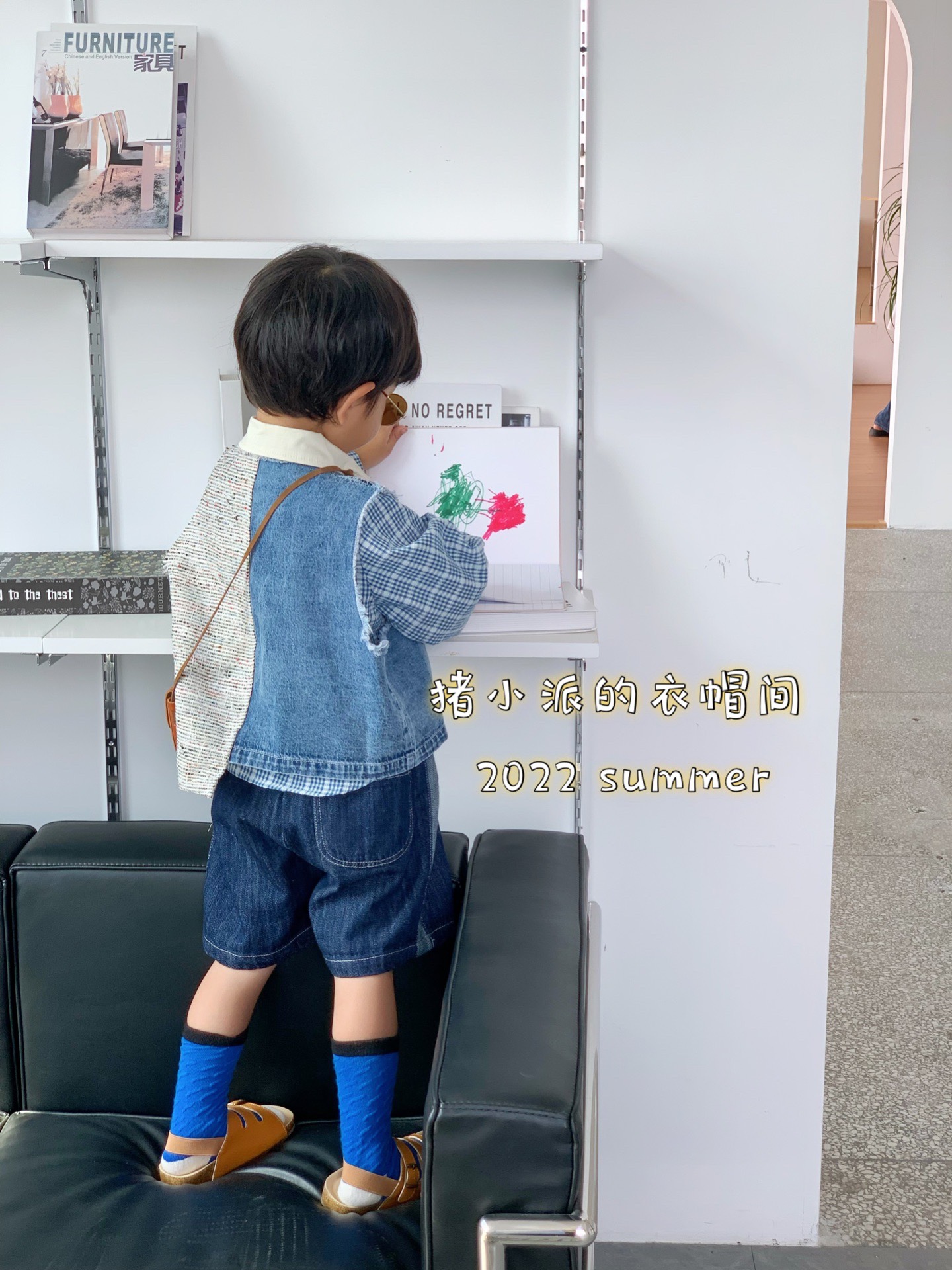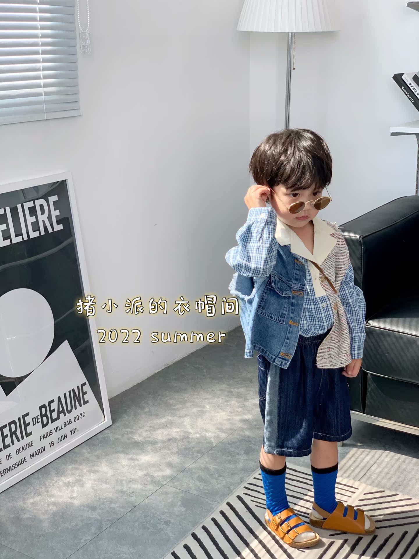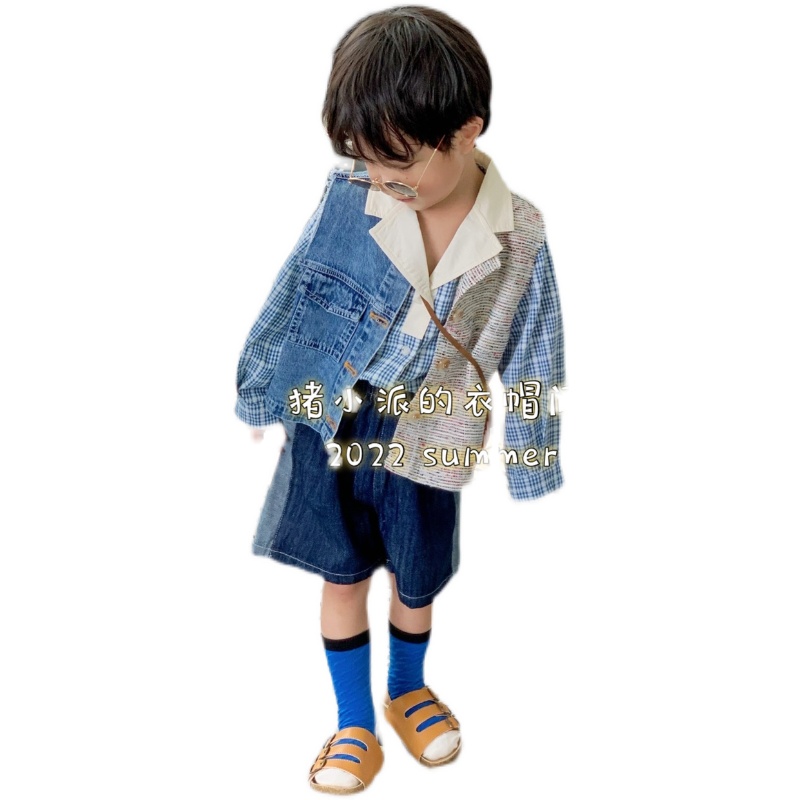 Pig Pie 2022 Spring/Summer Boys Children's Clothing Plaid Shirts Denim Stitching Vest Jeans Korean Suits
