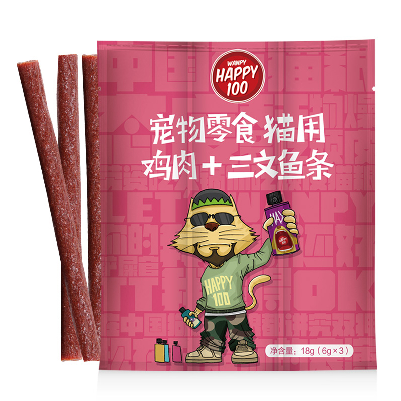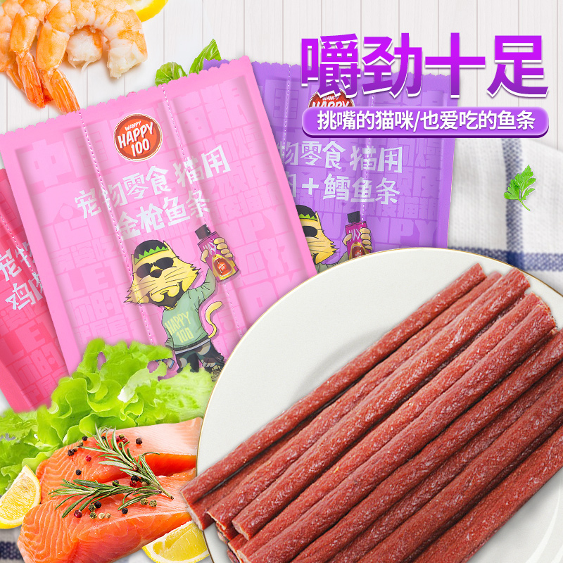Naughty happy100 cat with fish sticks salmon into young cat snacks small fish dry molar nutritious meat strips 3 packs