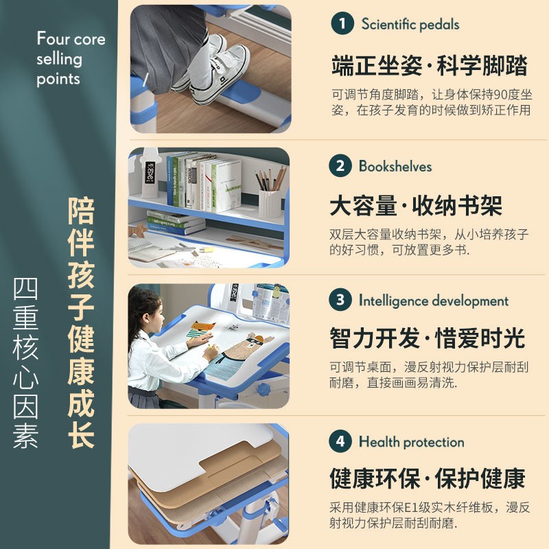 Children study table Children's desk book table and chairs suit Elementary school children's desk Home desk and chairs can be lifted