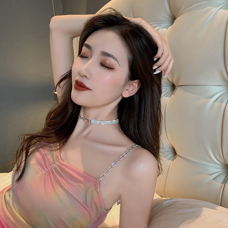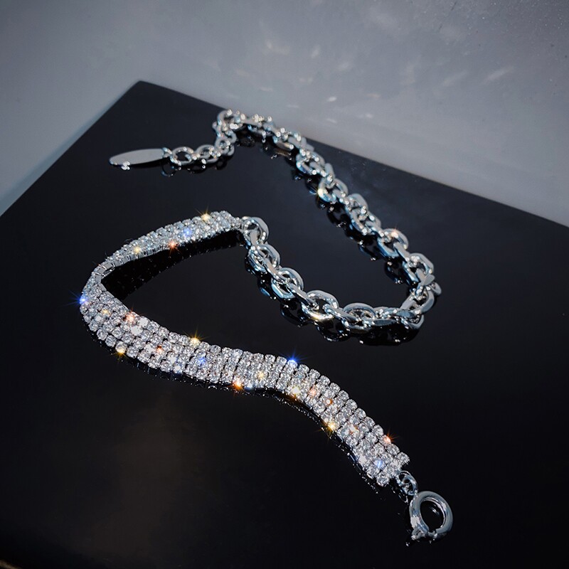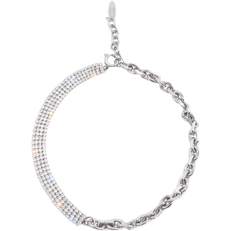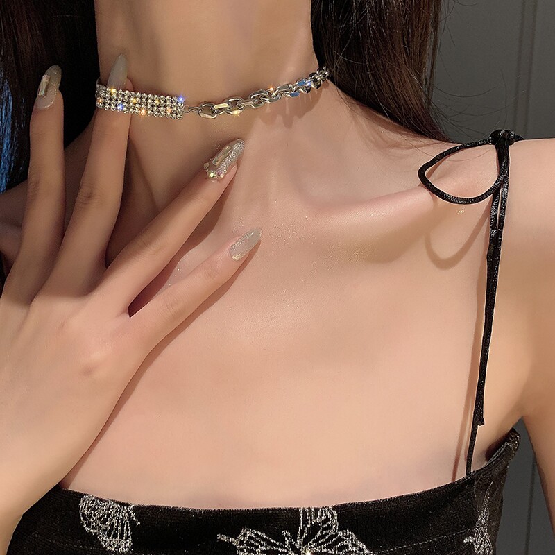 Korean net red flash diamond stitching necklace female ins cold wind collarbone chain niche design necklace snake bone chain