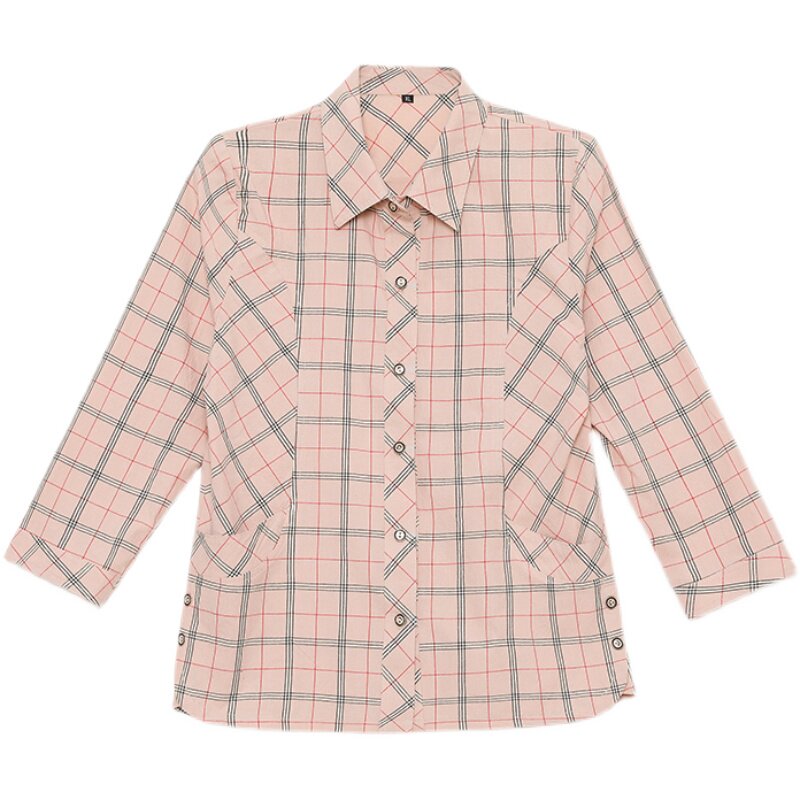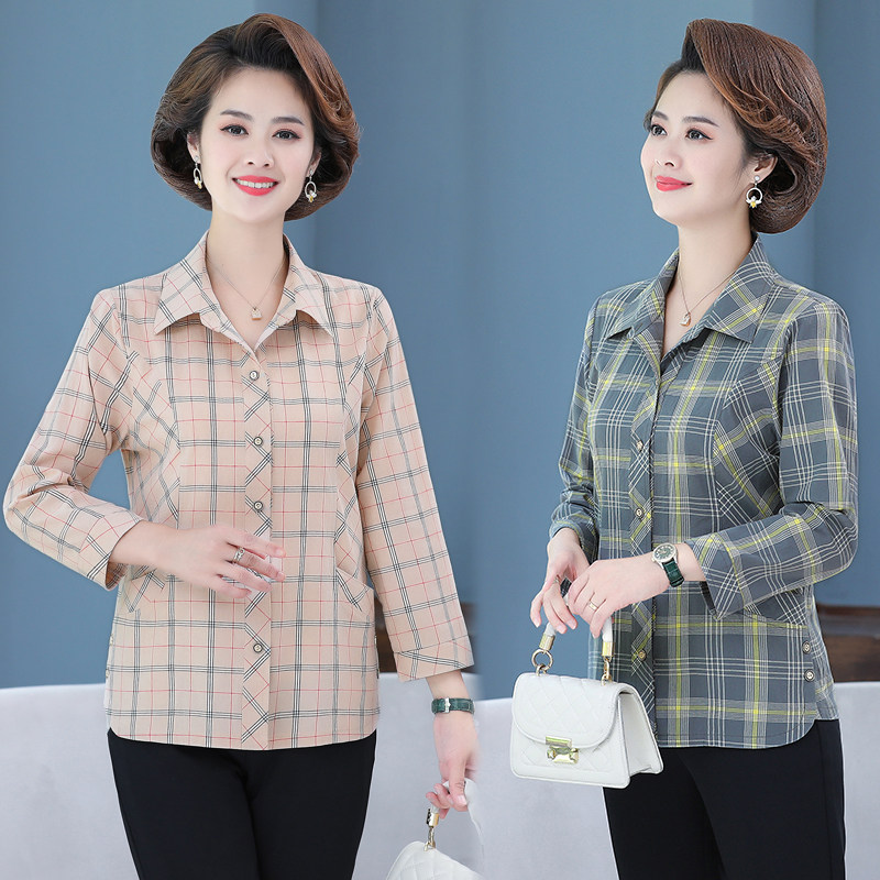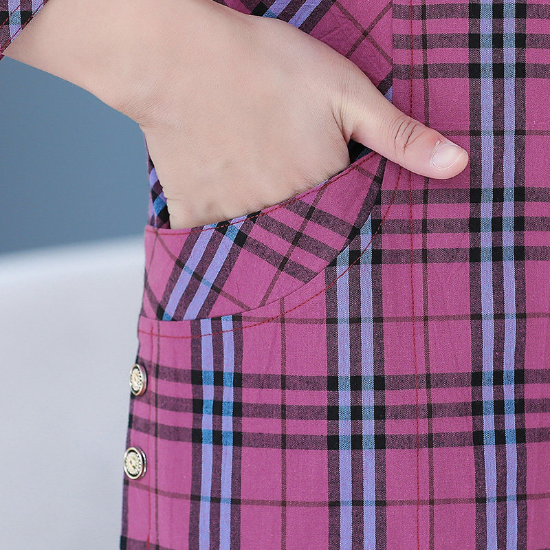 Mother Loaded Spring Dress Long Sleeve Pure Cotton Shirt With Pocket Mid Aged Women's Full Cotton Plaid Shirt Cardiovert Size