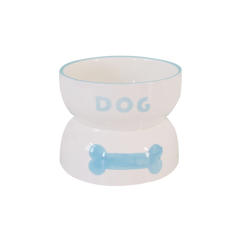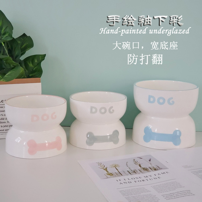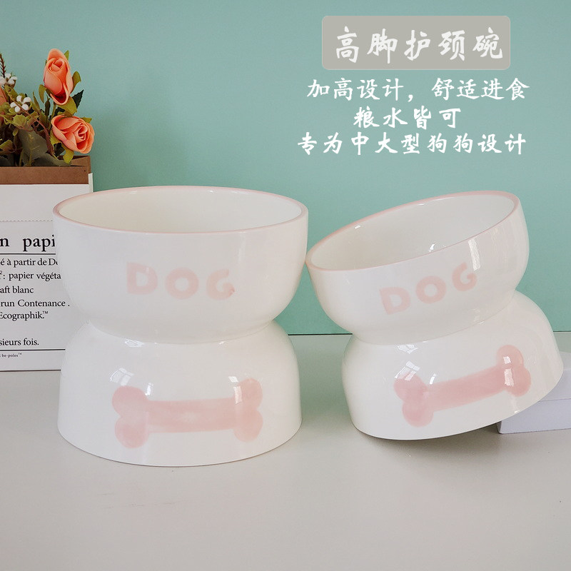 Ceramic medium and large dog basin high-footed anti-turning rice bowl protects cervical vertebrae golden retriever dog food basin deepens pet dog food basin water bowl