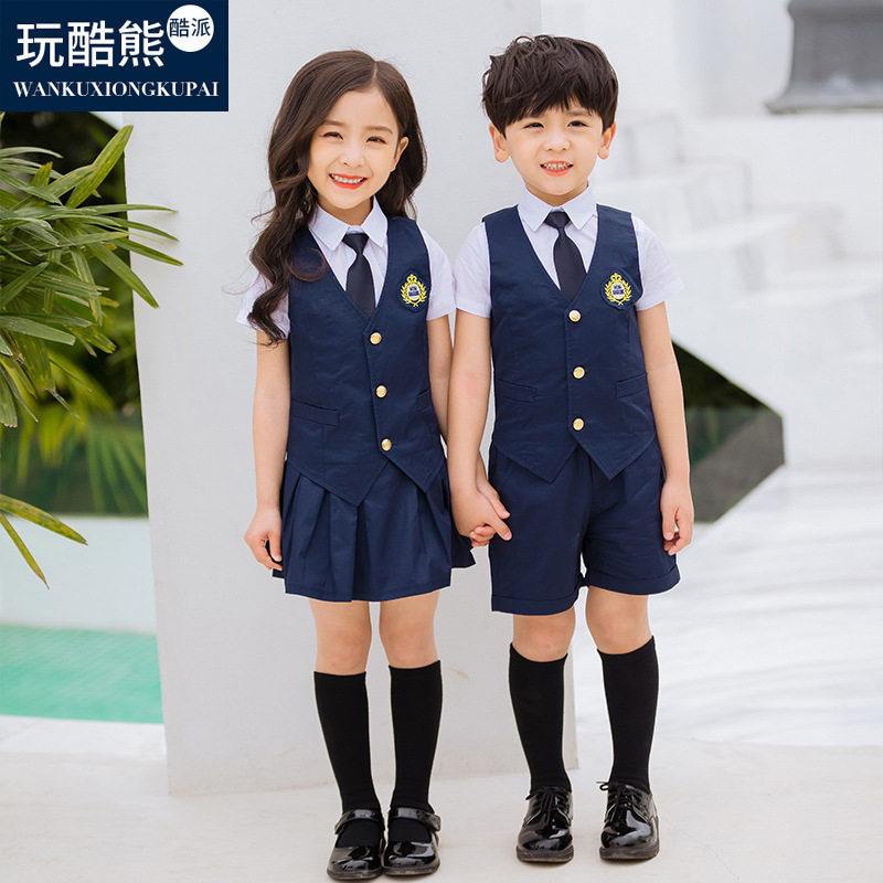 British style kindergarten garden clothes summer clothes primary school students class uniforms school uniforms class uniforms children's short-sleeved suit graduation photo dress
