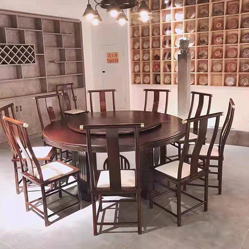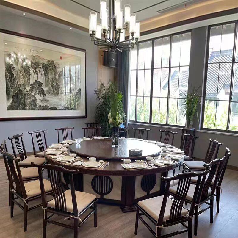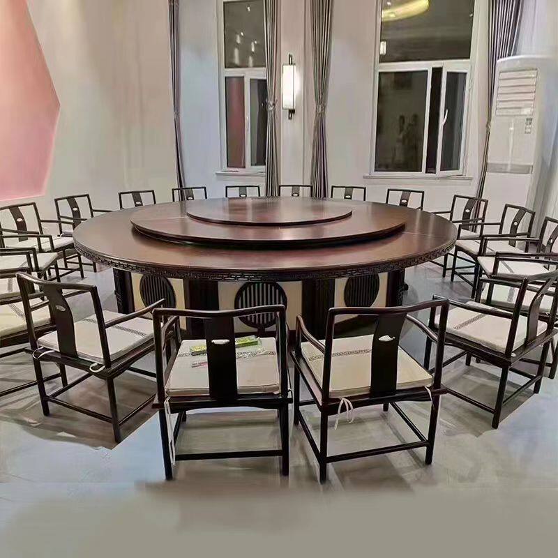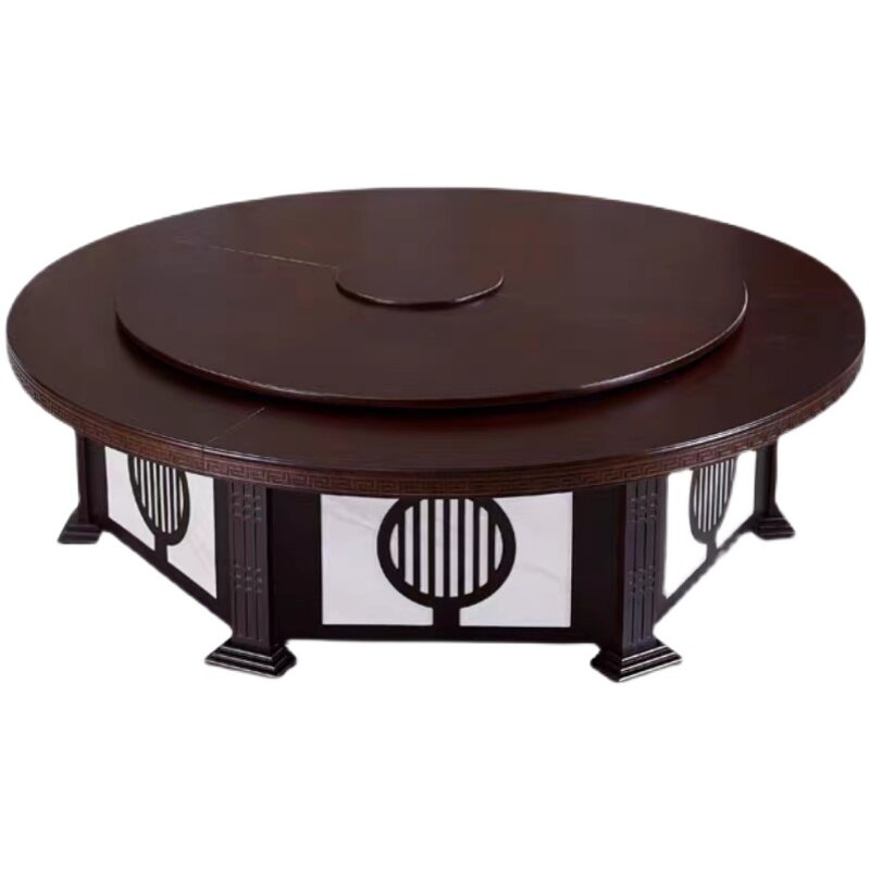 Hotel new Chinese solid wood large round table hotel electric dining table 16 18 20 automatic turntable banquet box table