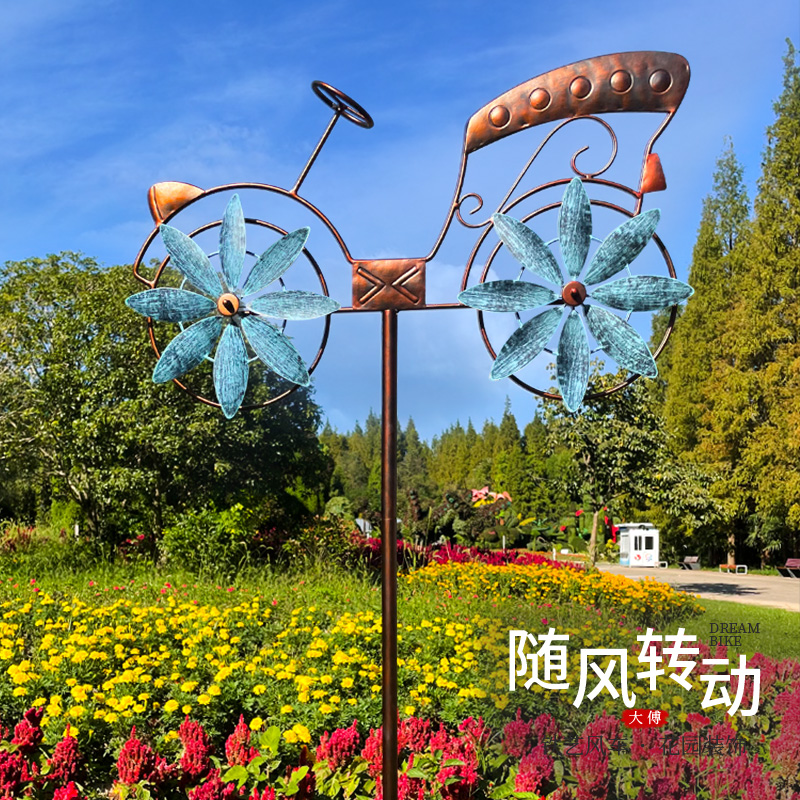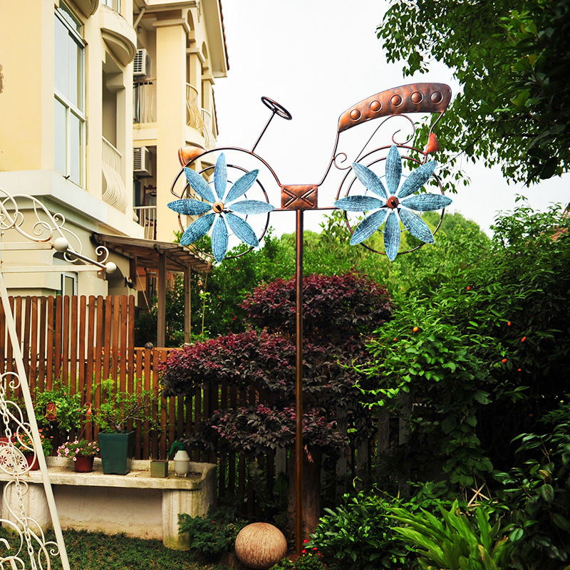 Outdoor Windmill Garden Balcony Patio Iron Art Swivel Decoration Pendulum Decorated Bike Model Creative Landscape Arrangement