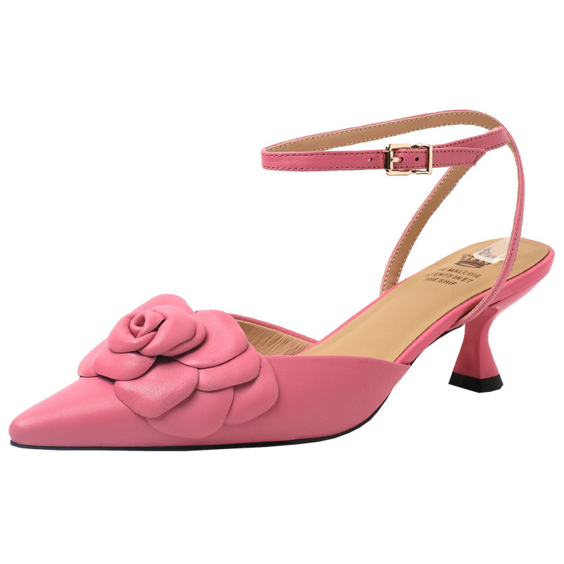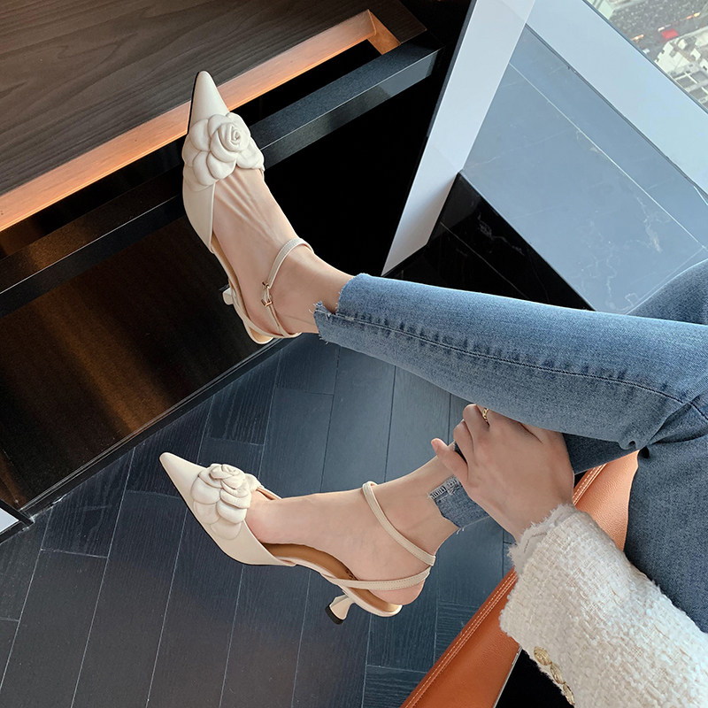 Madame Shuangsong Madame Baotou sandals women's fairy Wind rose Mountain tea Flower Small and fragrant after wind and red fine heel high heel shoes