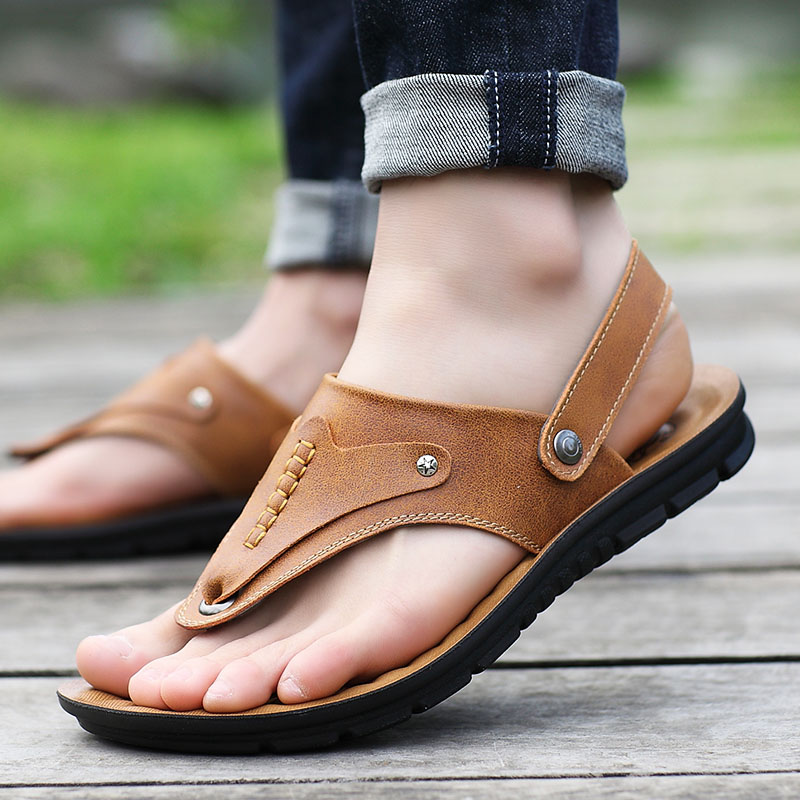 Tide card Men's sandals Anti-wear and wear 2022 Summer new cool leather shoes Men's dual use Driving Vietnam Chauffo slippers