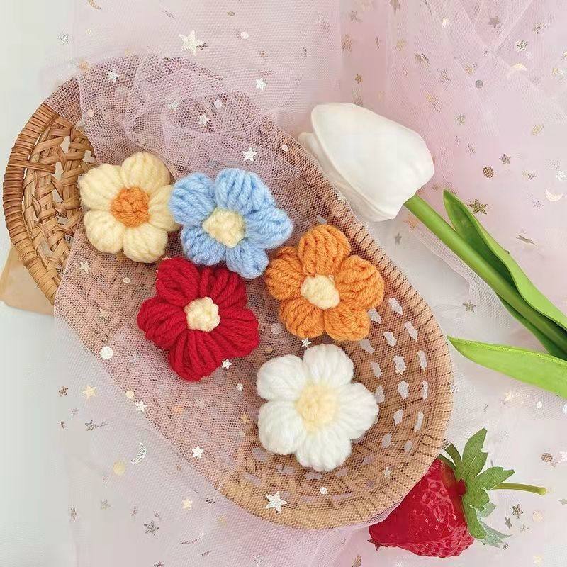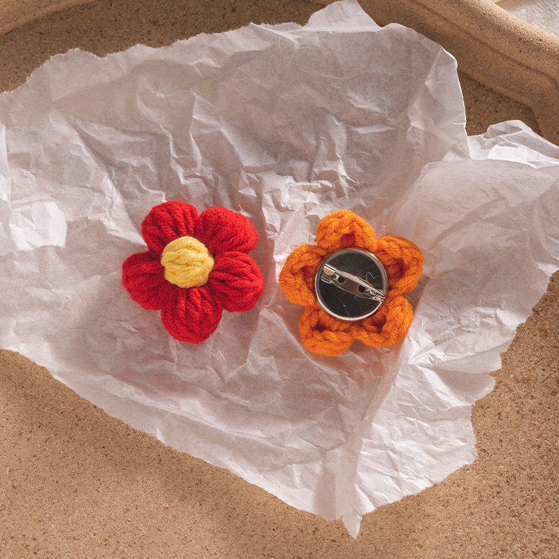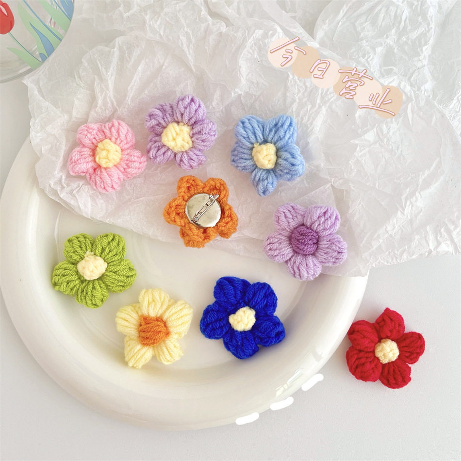 Cute little flower yarn hand-knit flower brooch small red flower clothes sweater decoration versatile pin accessories women