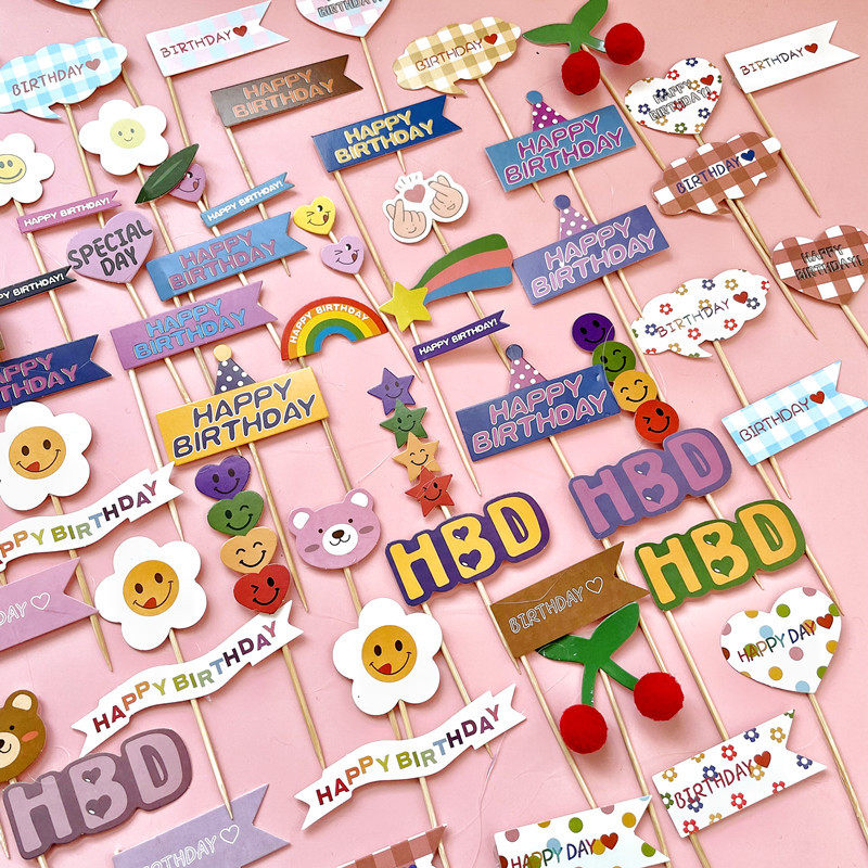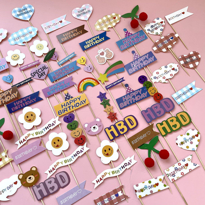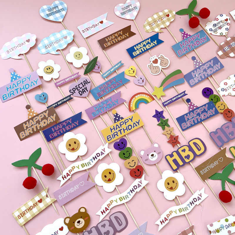 Korean in Red Birthday Party Plugin Cartoon Bear Cake SnackFace Rainbow Pick Baking Accessories