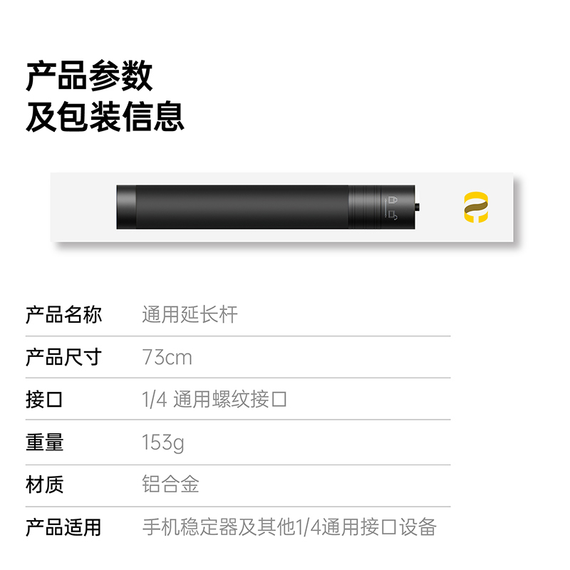 Mobile phone pan-tilt extension rod tripod telescopic rod extension rod handheld stabilizer 1 4-inch screw hole accessories universal